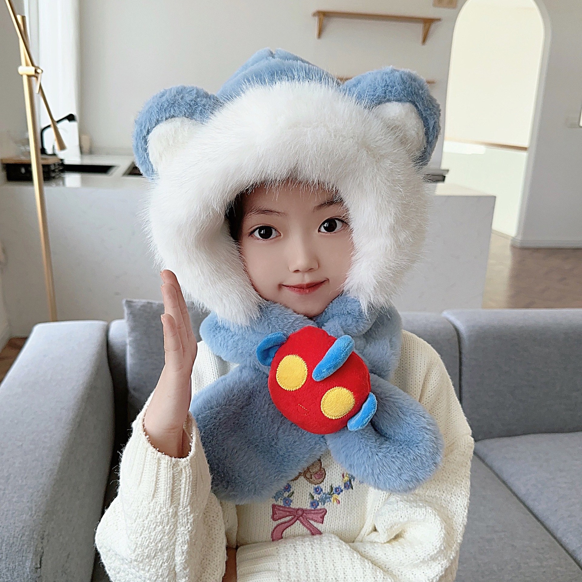 | nameOriginal | Children's Hat Scarf Integrated Scarf Autumn and Winter Velvet Baby Ear Protection Cap Warm Boys' and Children's Plush Cap Explosions |