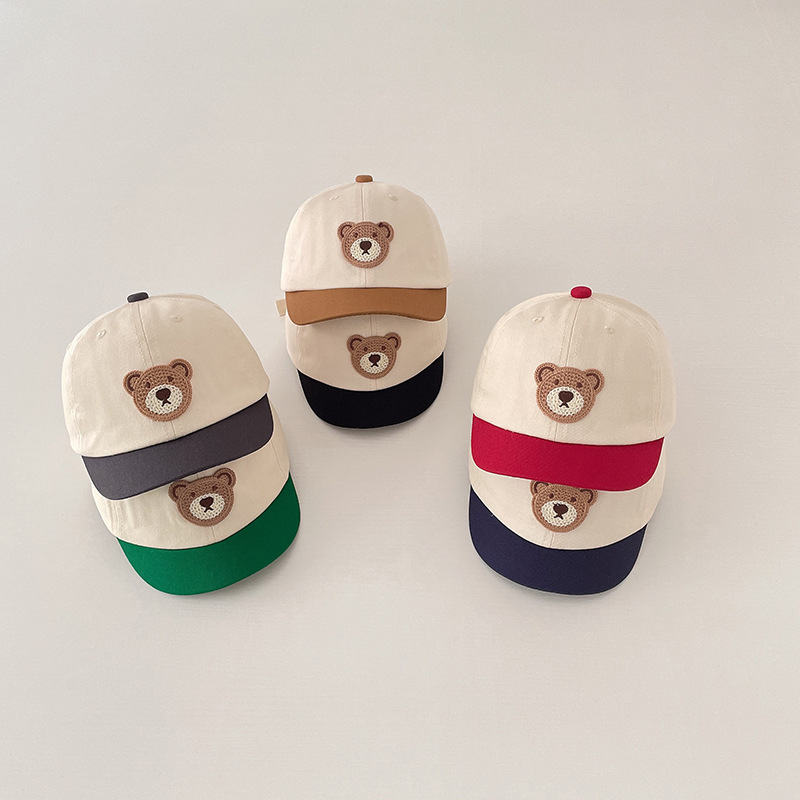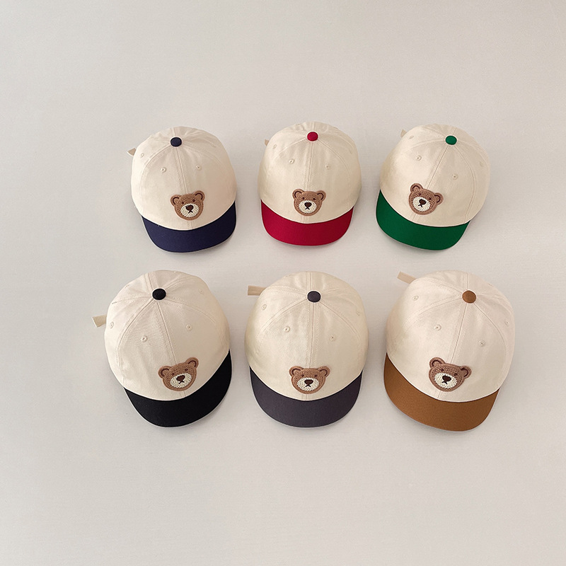 | nameOriginal | Children's hat South Korea cute bear embroidered short brim color matching peaked cap versatile casual boys and girls baby hat |