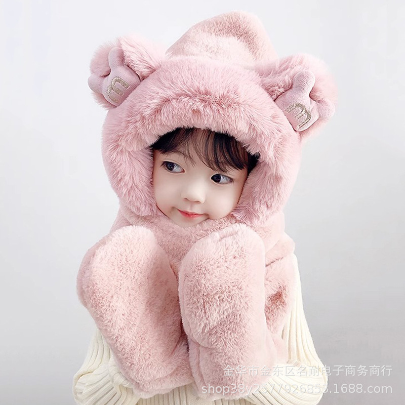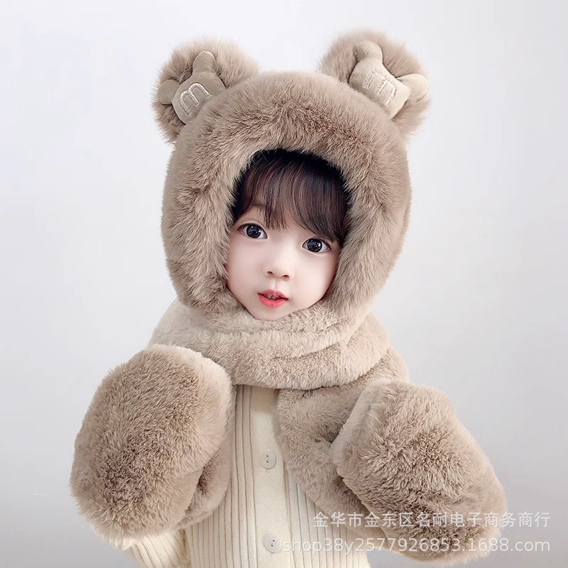 | nameOriginal | Children's hat winter Boys and Girls cute winter fleece-lined warm thickened earmuffs scarf scarf one-piece hat |