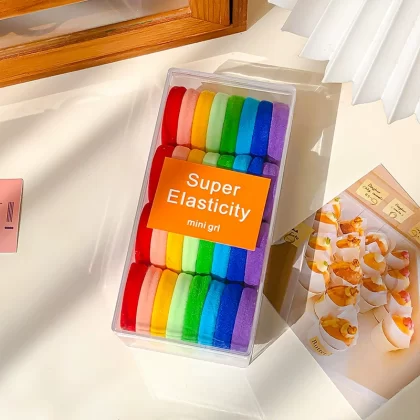 | nameOriginal | Children's headband, girl's hair tie, baby rainbow color, cute ponytail, high appearance, durable rubber band and rubber ring |