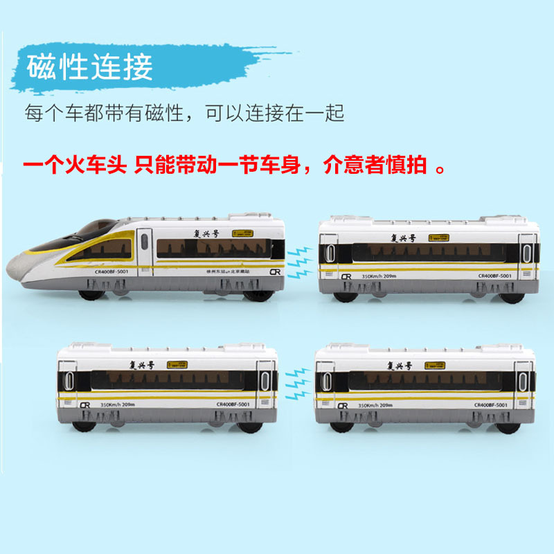 | nameOriginal | Children's high-speed train toy motor car model high-speed rail Fuxing simulation train plastic pull-back car magnetic assembly |