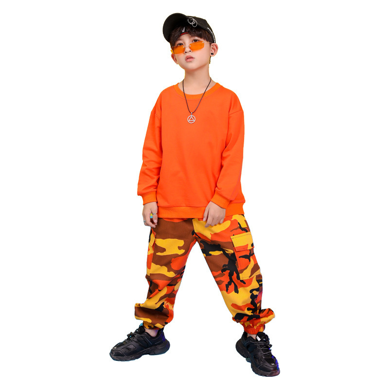 | nameOriginal | Children's Hip-hop Long-sleeved Sweater Custom Printed logo Dropped Shoulder Boys' Hip-hop Handsome Costume Suit Camouflage Pants for Women |