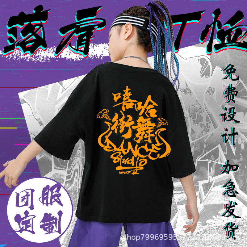 | nameOriginal | Children's hip hop T-shirt printed hiphop boys and girls hip hop drop shoulder short sleeve printed logo trendy dance practice clothes |