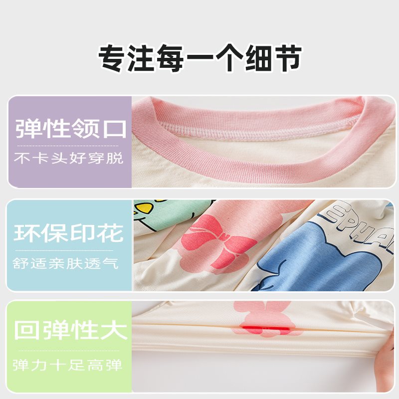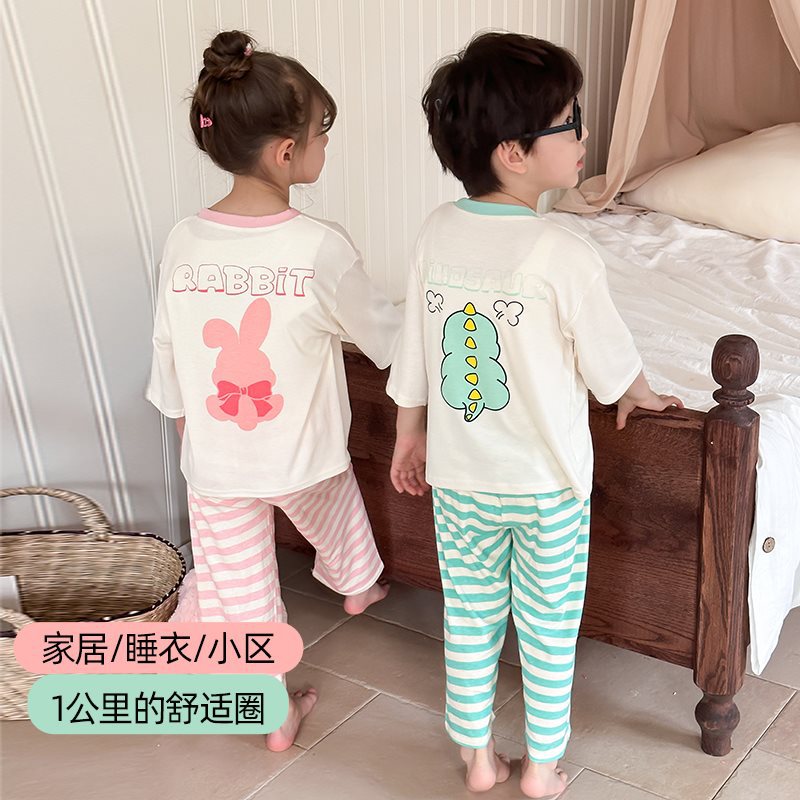 Children’s Home Clothes 2024 Spring and Autumn Seven-point suit Thin Baby Modal Breathable Air-conditioning Clothes Pajamas for Boys and Girls