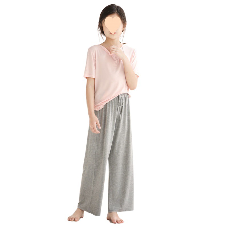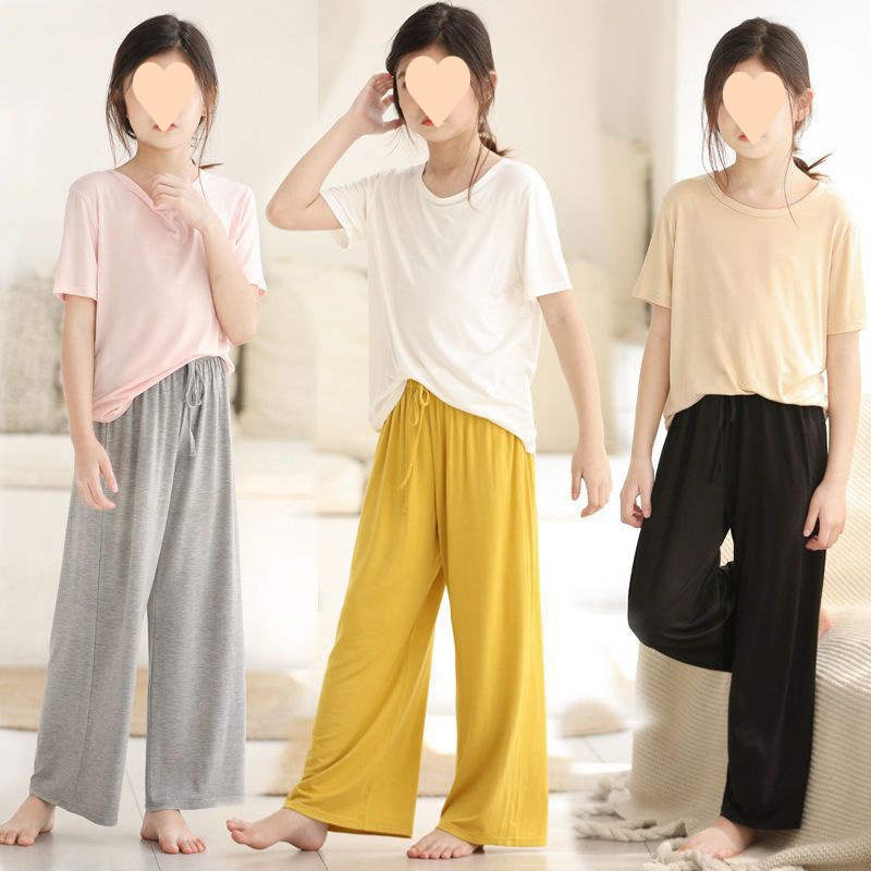 | nameOriginal | Children's Home Clothes Short-sleeved Wide-leg Pants Outer Wear suit Girls Solid Color Summer Western Style New Two-piece Set |