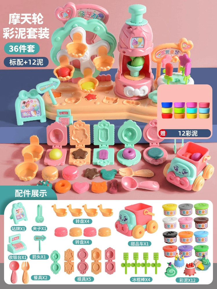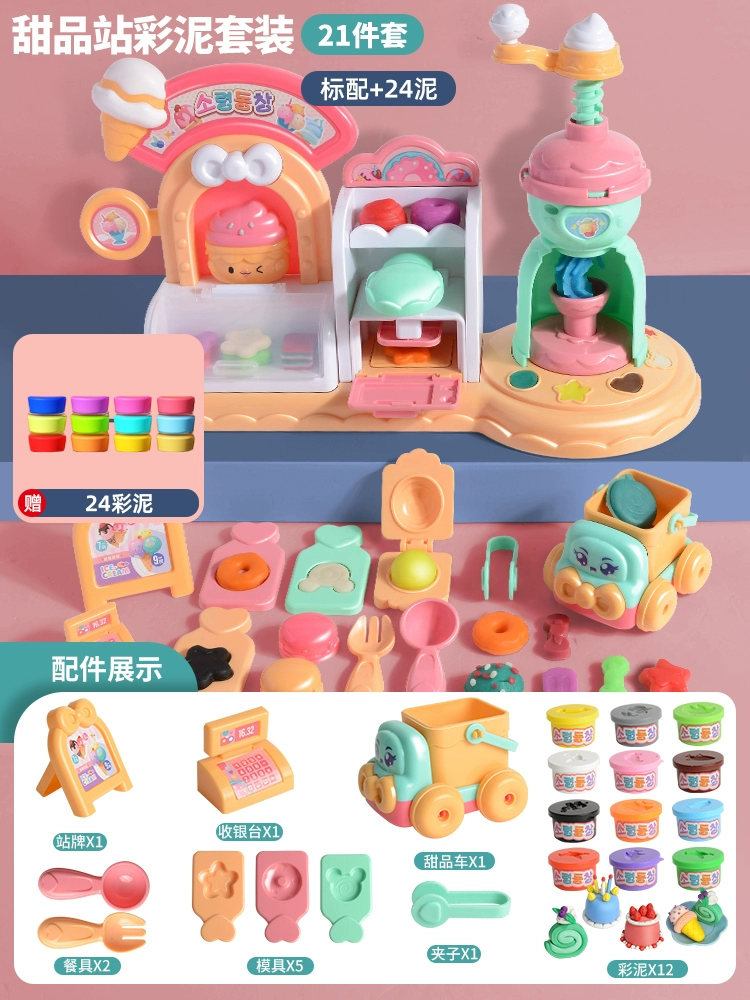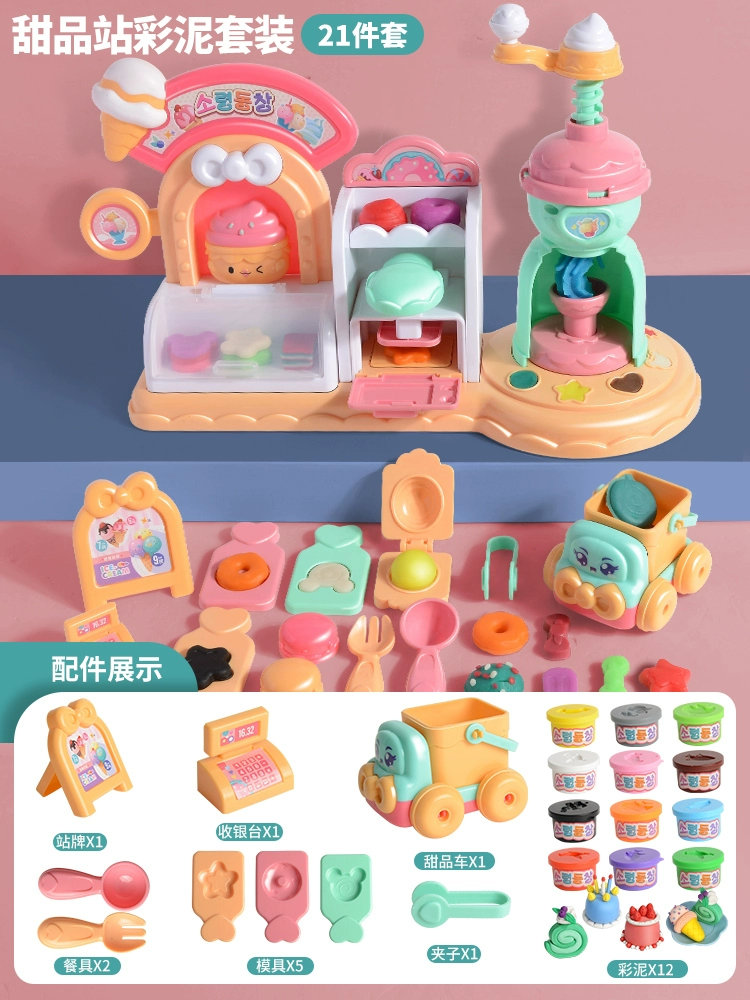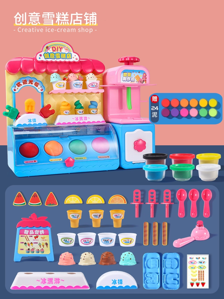 | nameOriginal | Children's ice cream shop non-toxic colored clay plasticine mold tool set food grade clay toy girl |