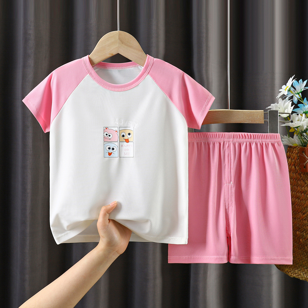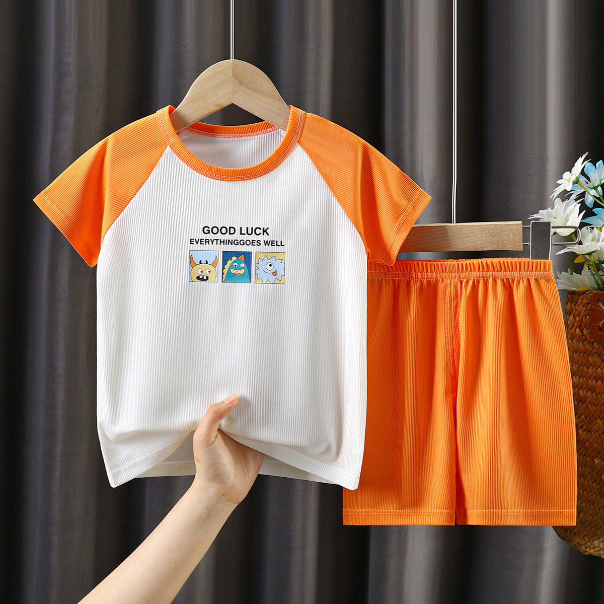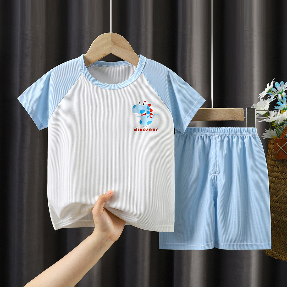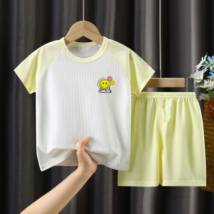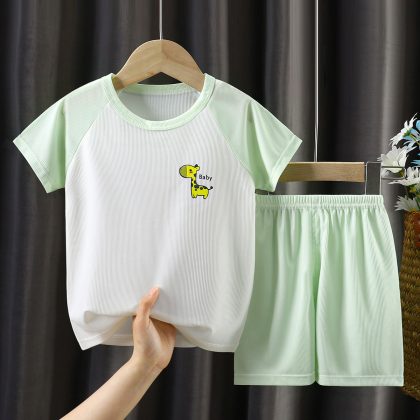 | nameOriginal | Children's Ice Silk Short-sleeved Shorts Set Summer Raglan Middle and Large Children's Half-sleeved Shorts Two-piece Casual Cartoon Set |