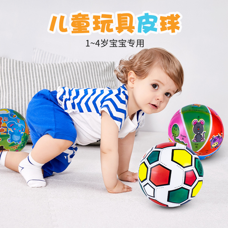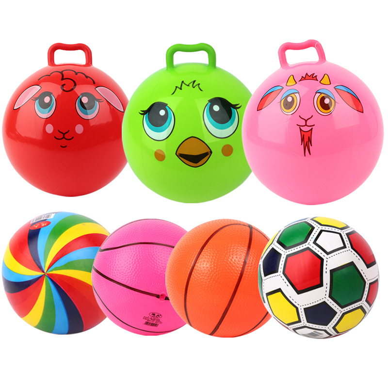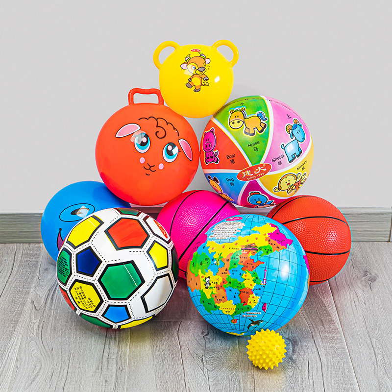 Children’s inflatable hand snap ball kindergarten painted inflatable ball elastic handle ball cartoon pattern hand ball
