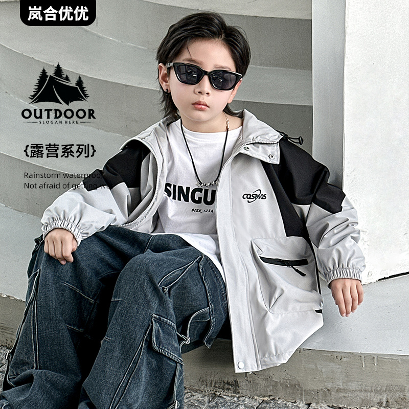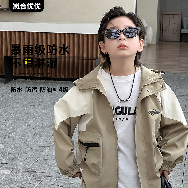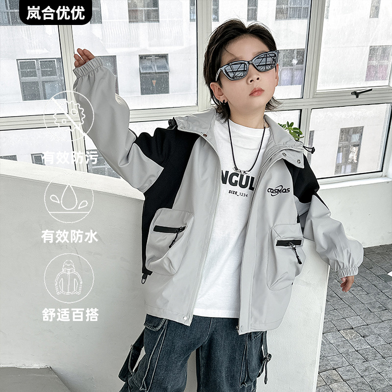 Children’s jacket 2024 spring and autumn one-piece New medium and big children’s casual trendy jacket boys and girls handsome waterproof jacket
