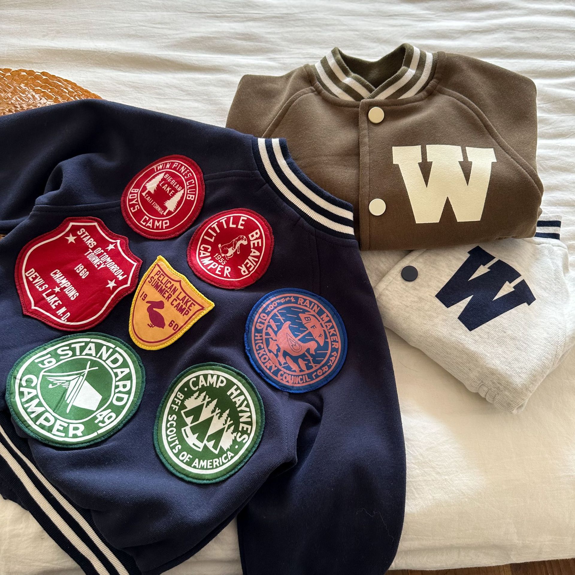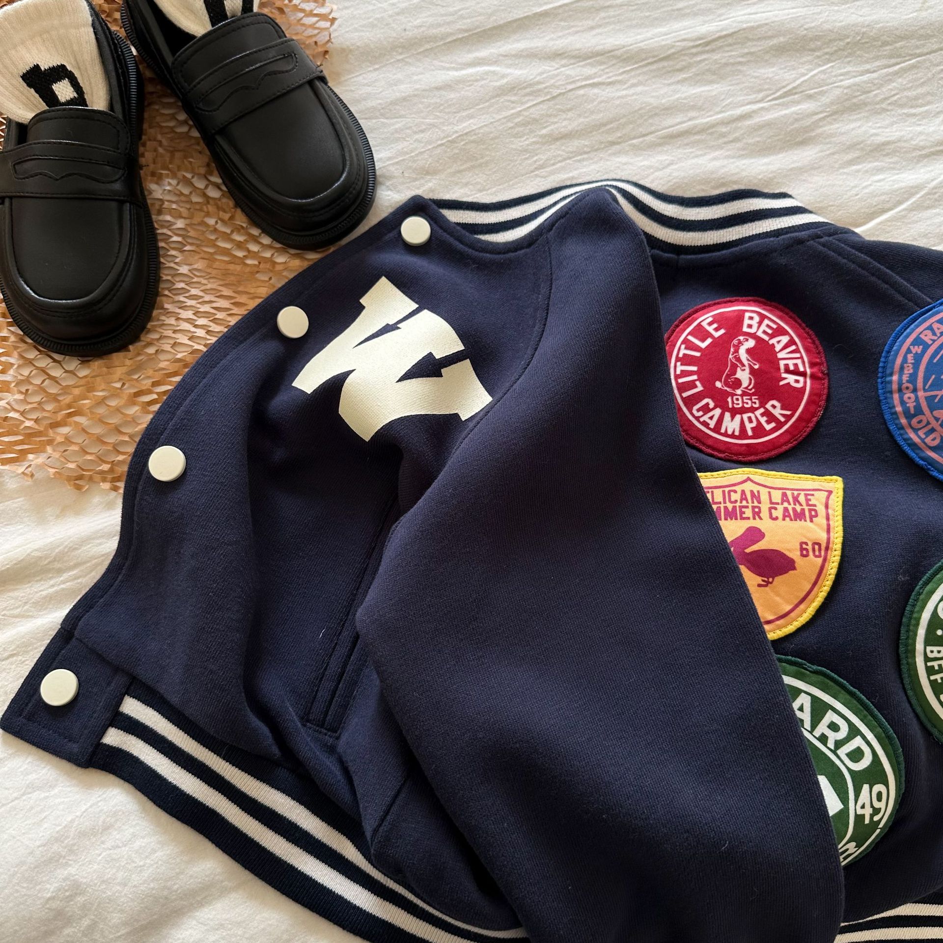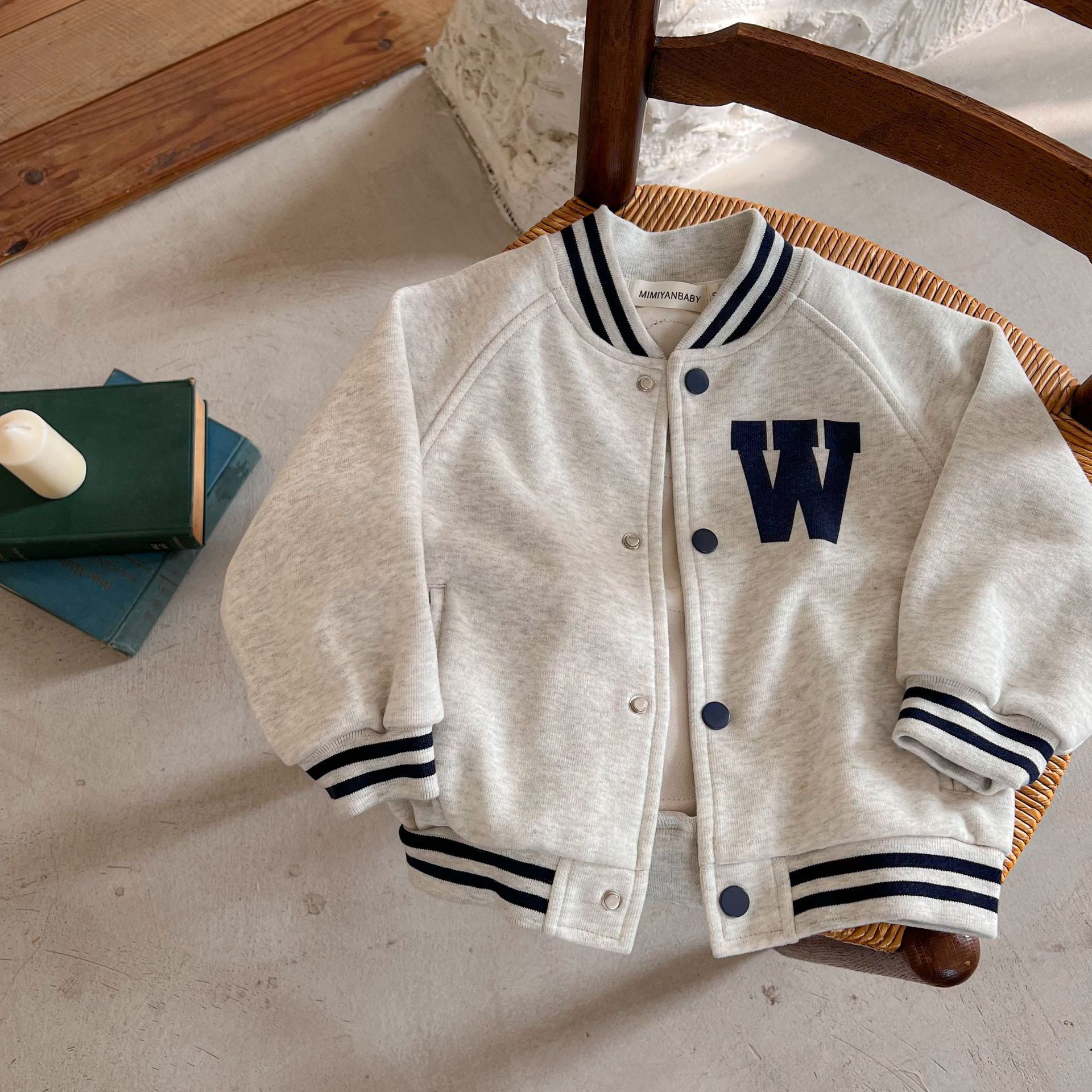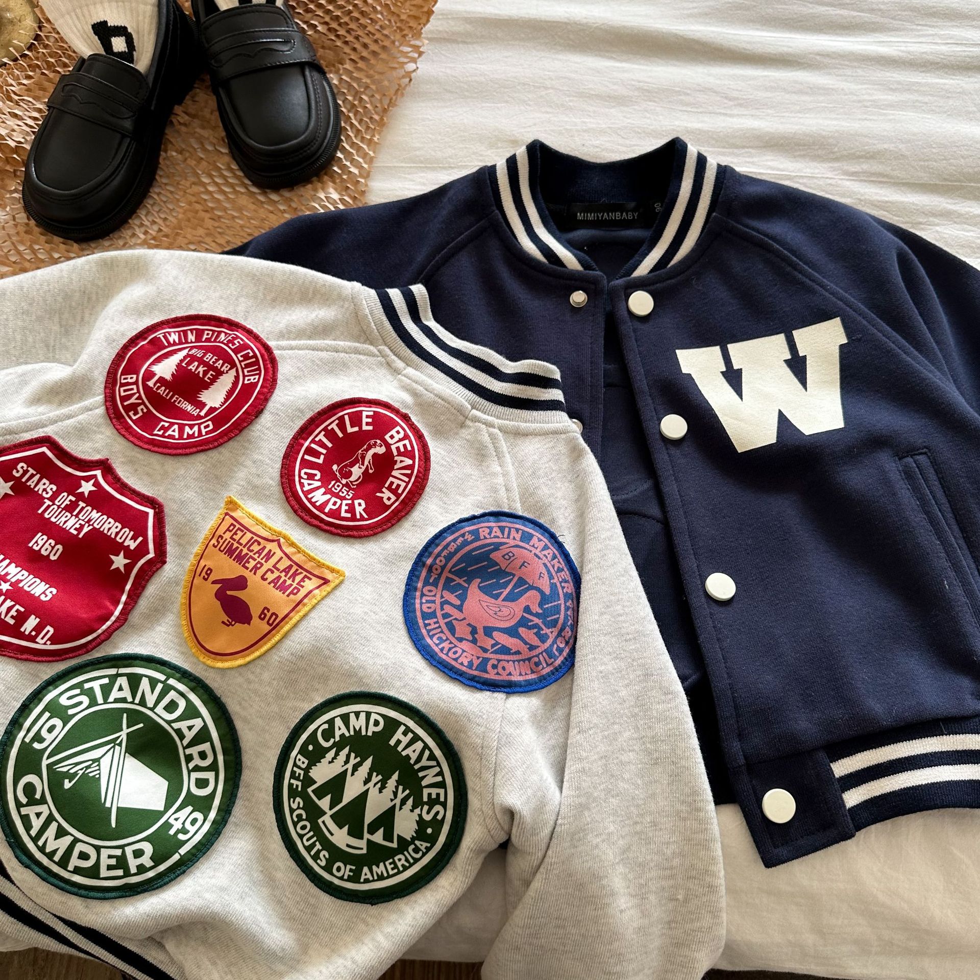 | nameOriginal | Children's jacket 2024 squinting spring new boys and girls labeling short baseball uniform baby letter jacket |