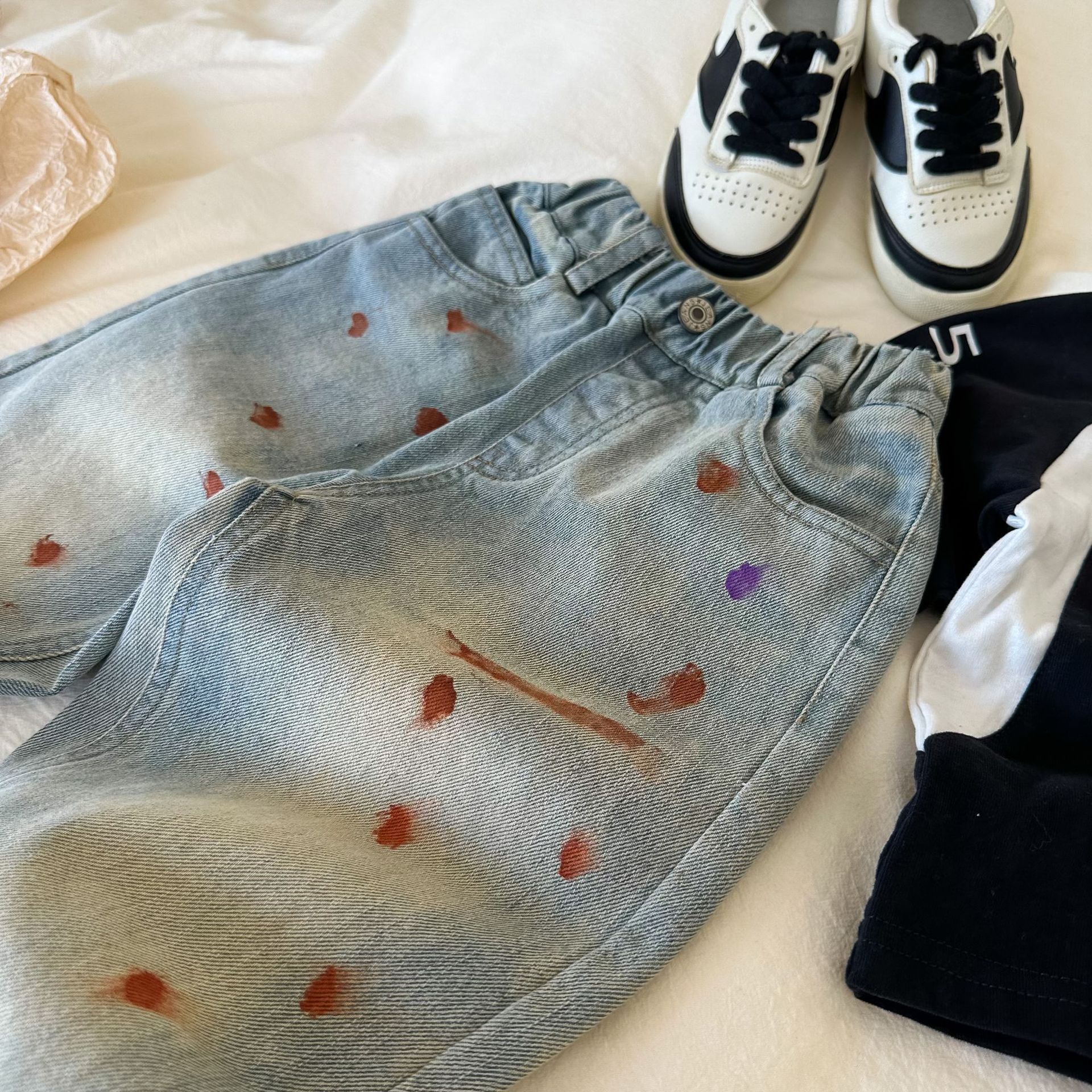 | nameOriginal | Children's Jeans 2024 Autumn New Boys and Girls Personalized Splash Point Jeans Baby Korean Style Straight Trendy Pants |