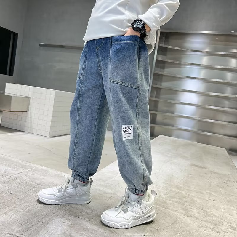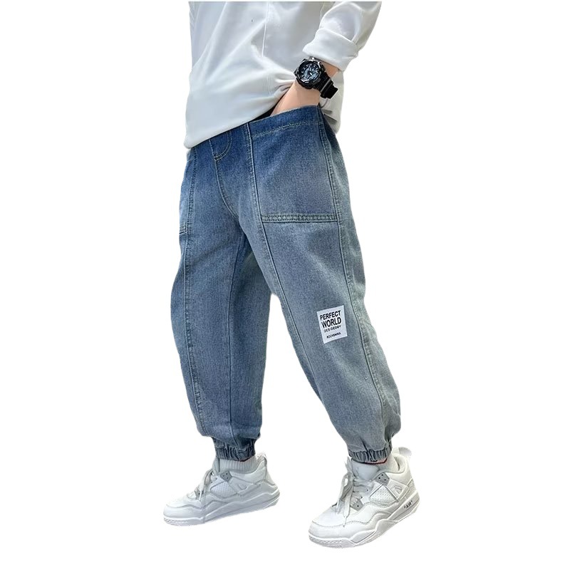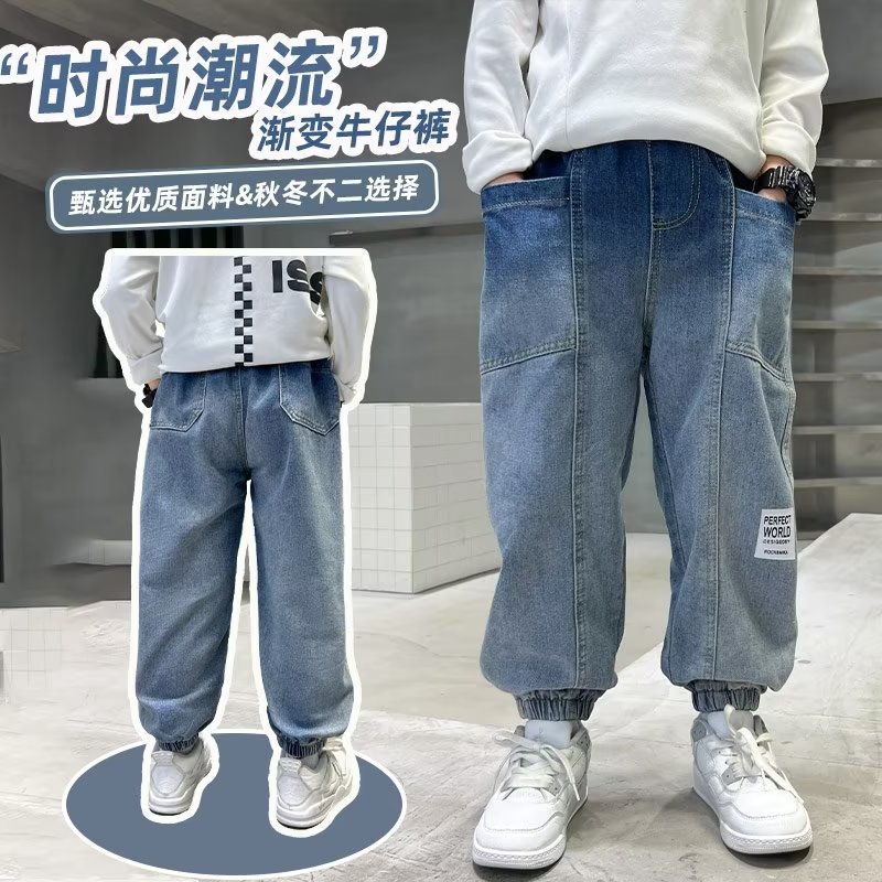 Children's Jeans 2024 Spring New Boys' Pants Baby Western Style Casual Washed Outer Wear Trousers Trendy Children's Wear