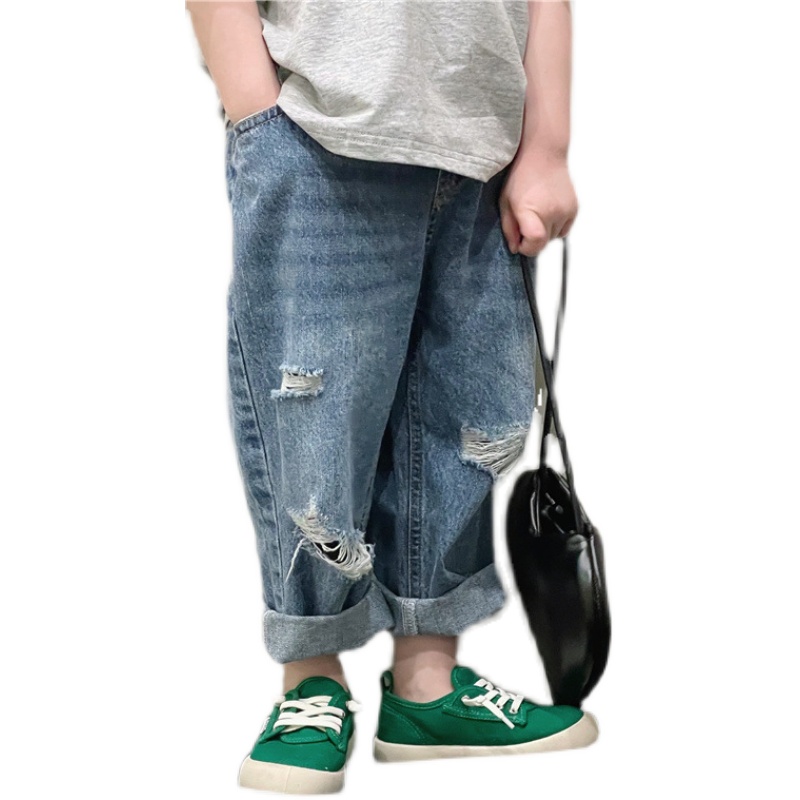 | nameOriginal | Children's jeans 2024 Summer boys' ripped baby pants thin children's middle pants all-matching pants |