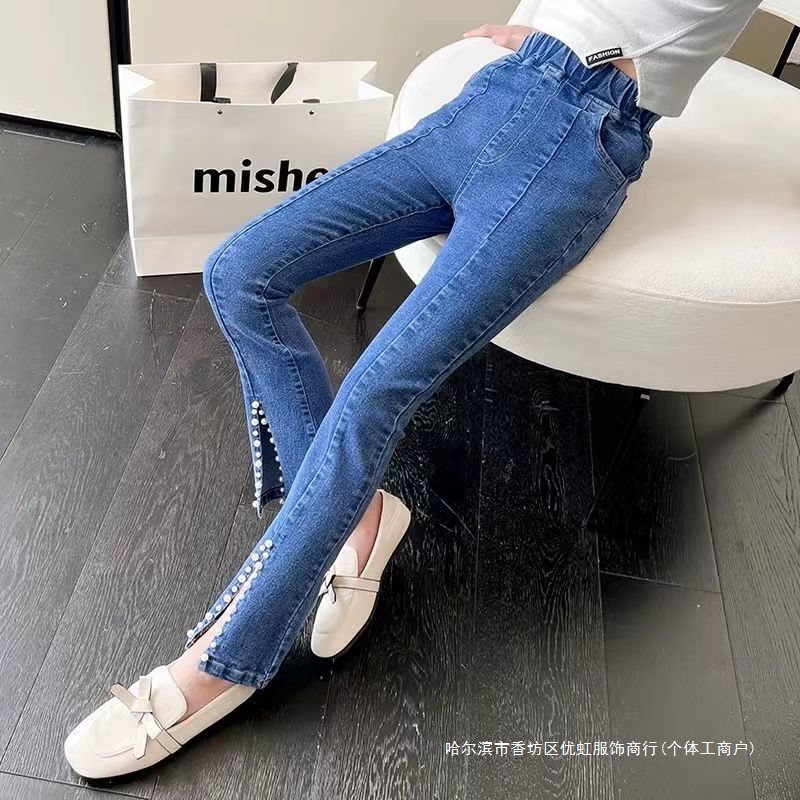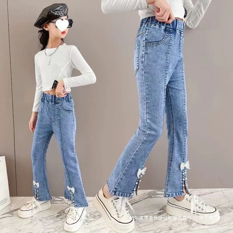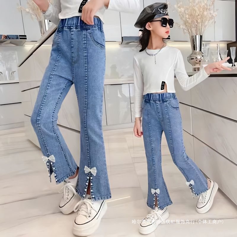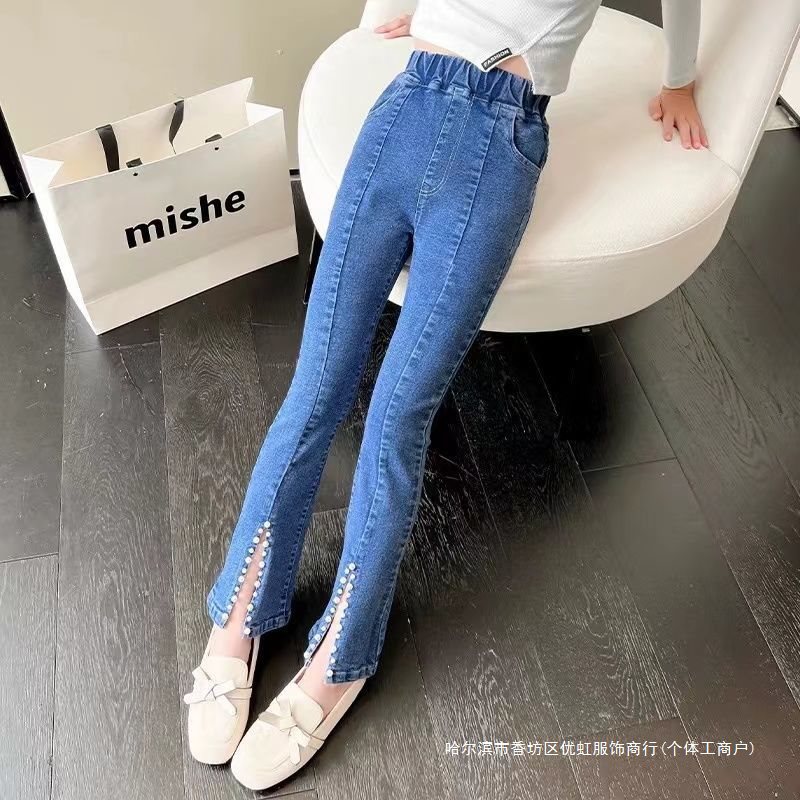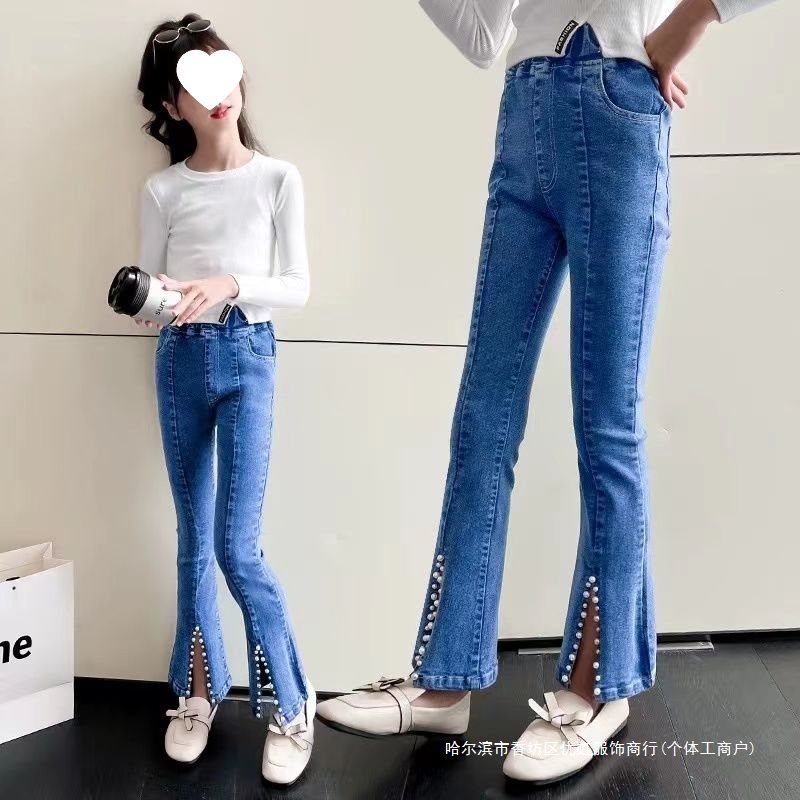 | nameOriginal | Children's Jeans Girls Spring and Autumn Big Children's Split Stretch Flared Pants Slim-fit Mid-child Women's Pants Western-style |
