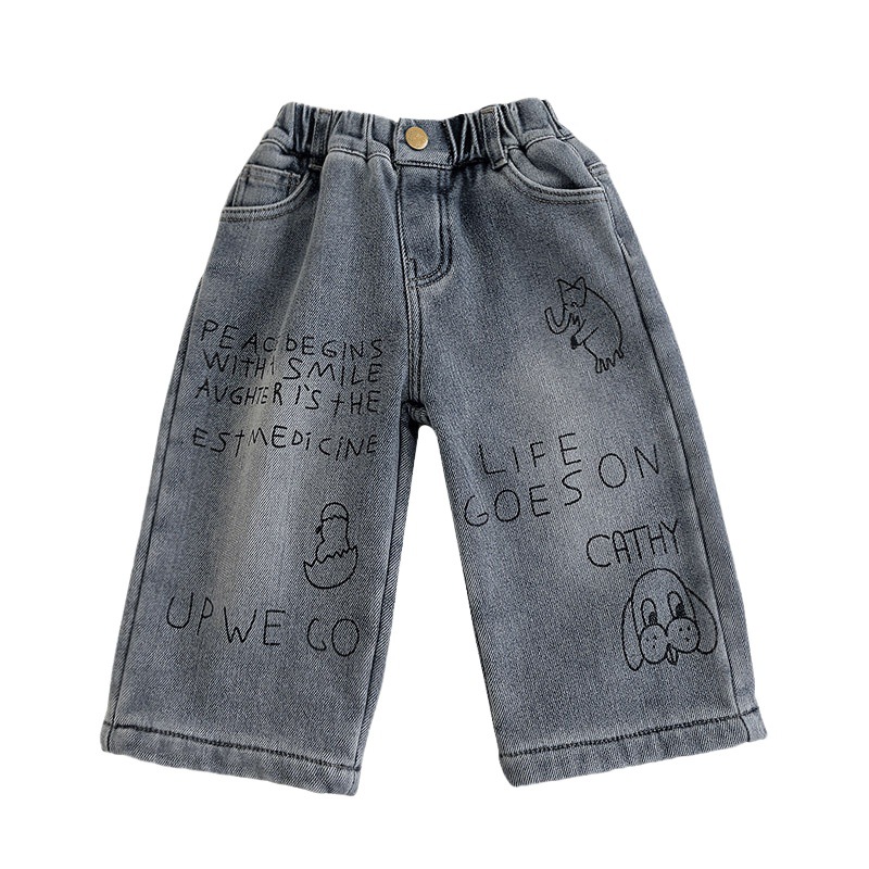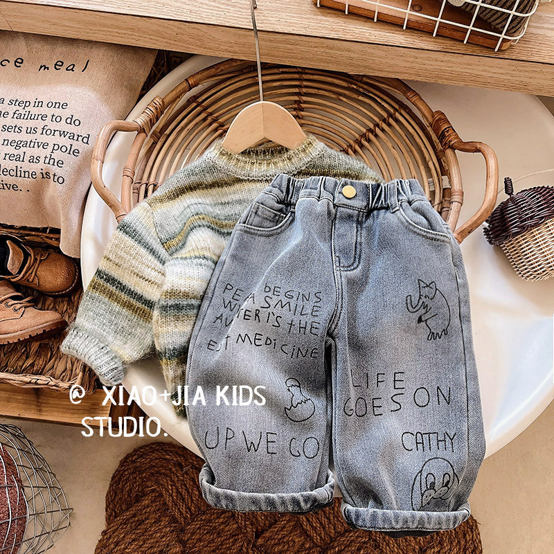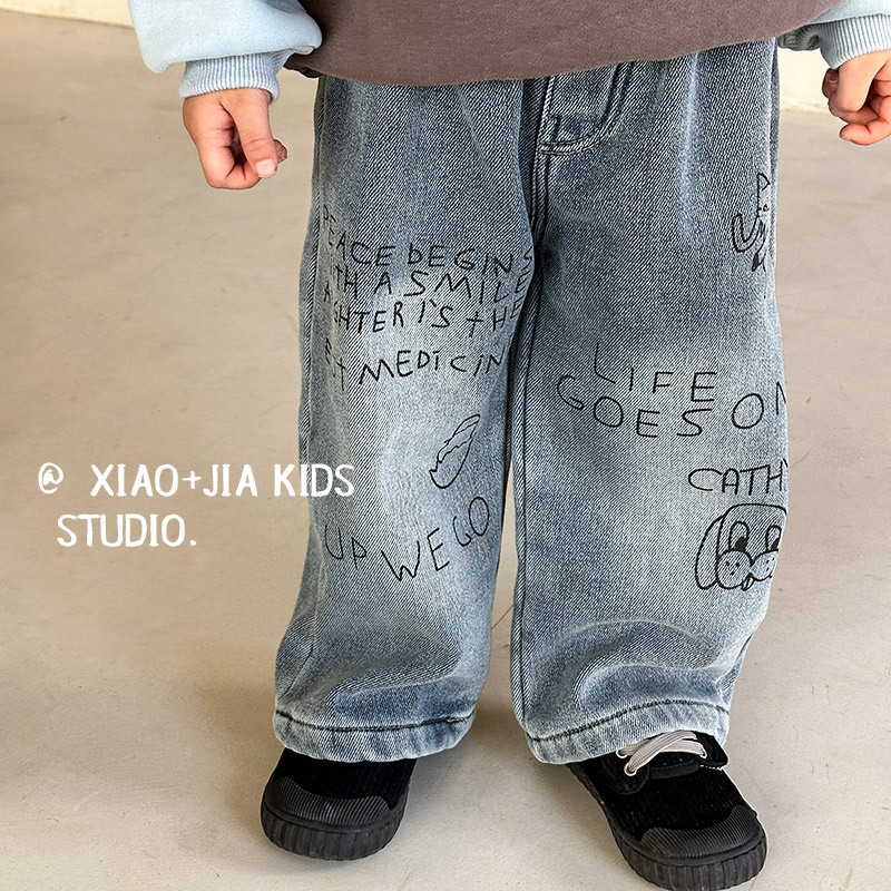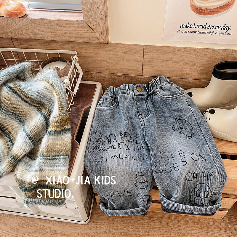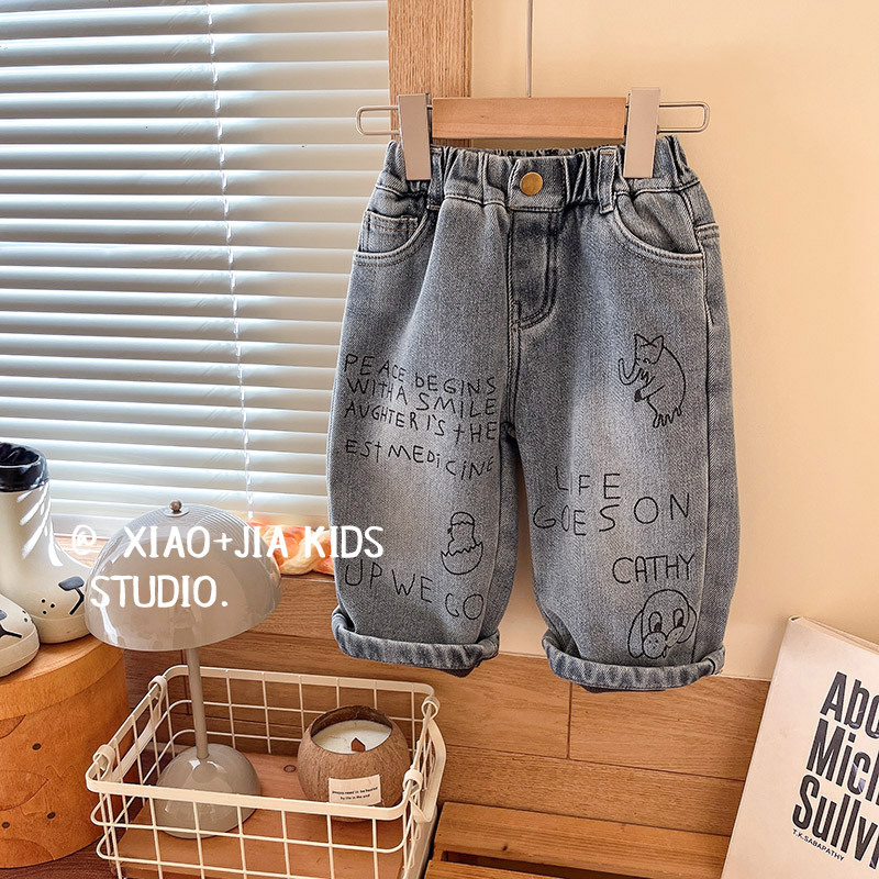 Children's Jeans Spring and Autumn Children's Western Style Pants Baby's Spring Wear Trousers Korean Boys' Graffiti Straight Casual Pants