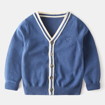Children’s Knitted Cardigan Cotton Western Style Baby’s V-neck Sweater Thin Autumn New Children’s Wear Boy’s Knitted Jacket