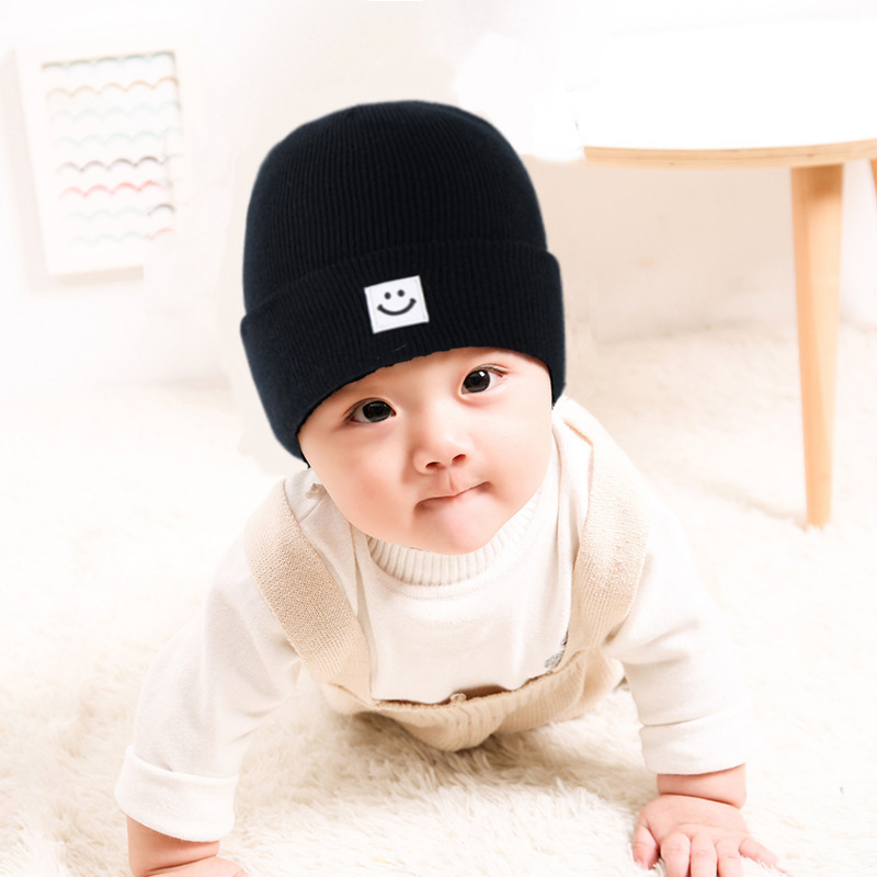 | nameOriginal | Children's knitted hat smiling face baby wool hat European and American Joker cute smile pattern hat autumn and winter beanie |
