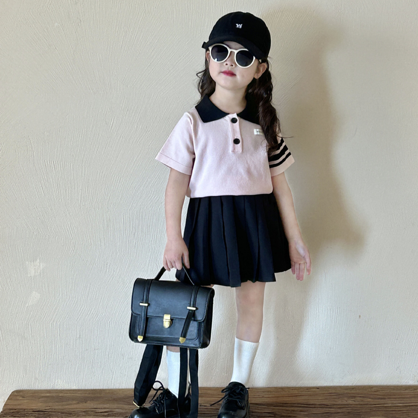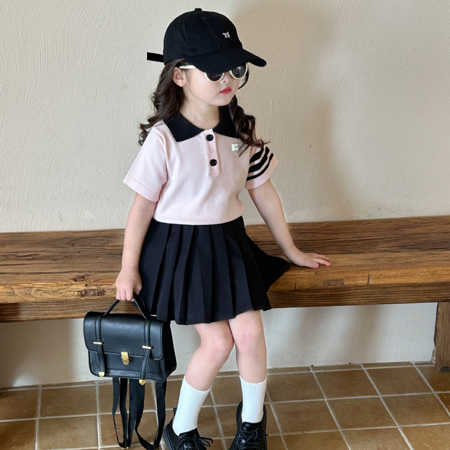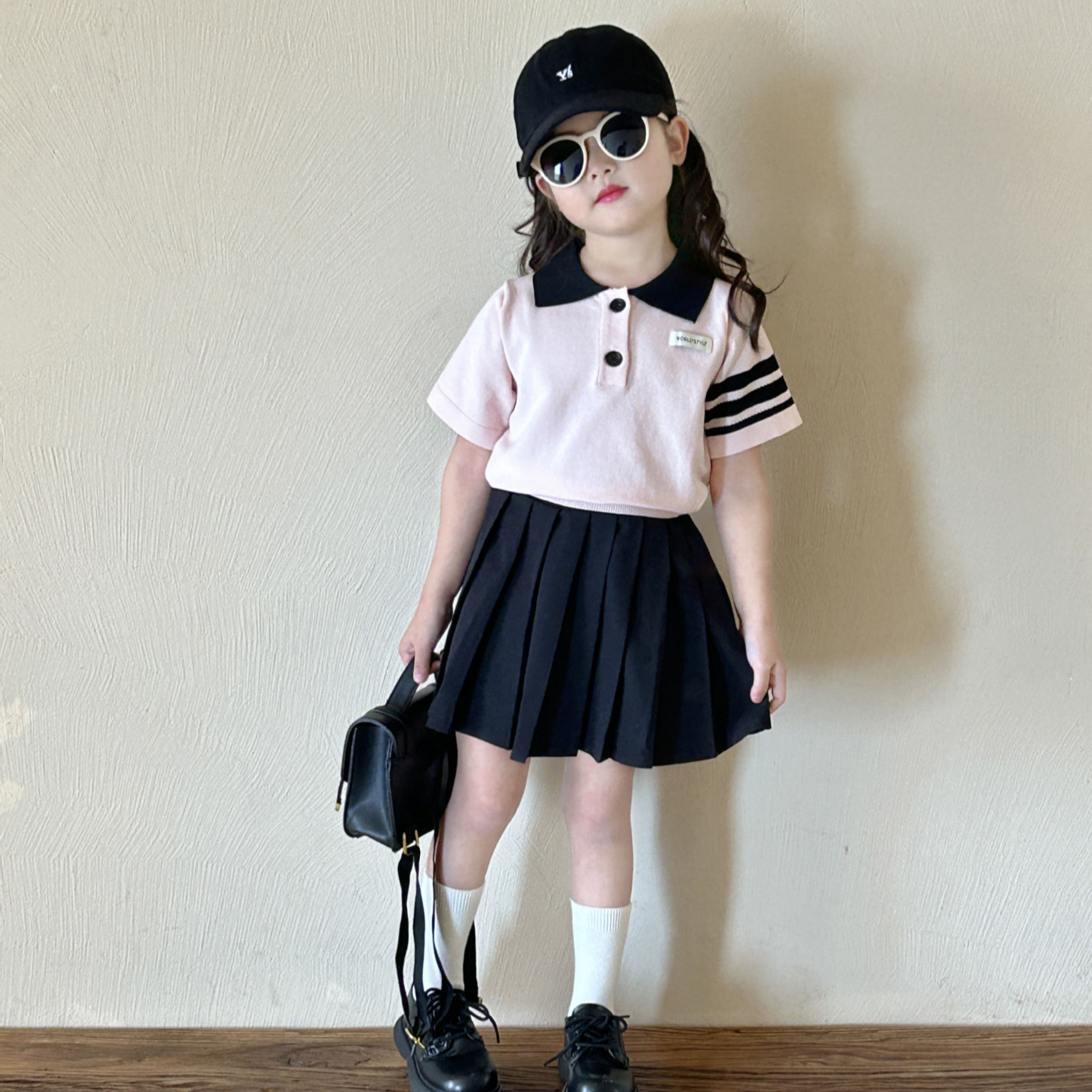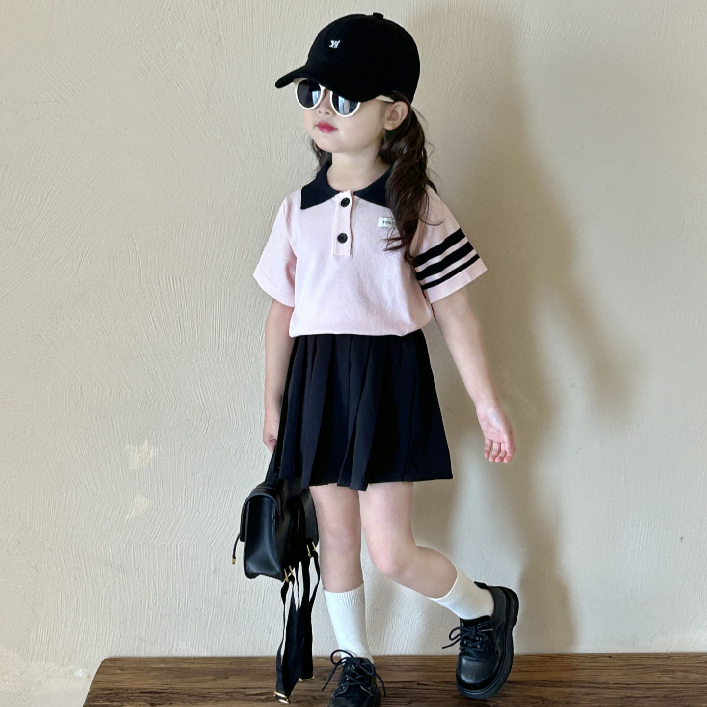 Children’s knitted polo shirt 2024 Summer new Girls’ 2-7 years old college style short-sleeved shirt children’s T-shirt