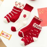 Children’s Knitted Socks Red Native Year Children’s Socks Small Cherry Medium Cylinder Printed Girls Spring and Summer Baby Cotton Socks