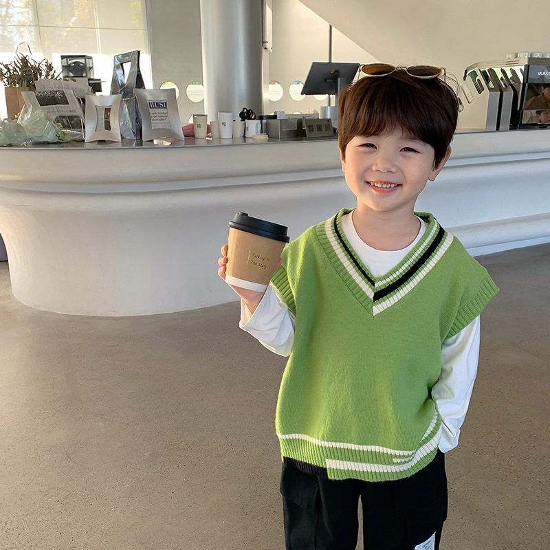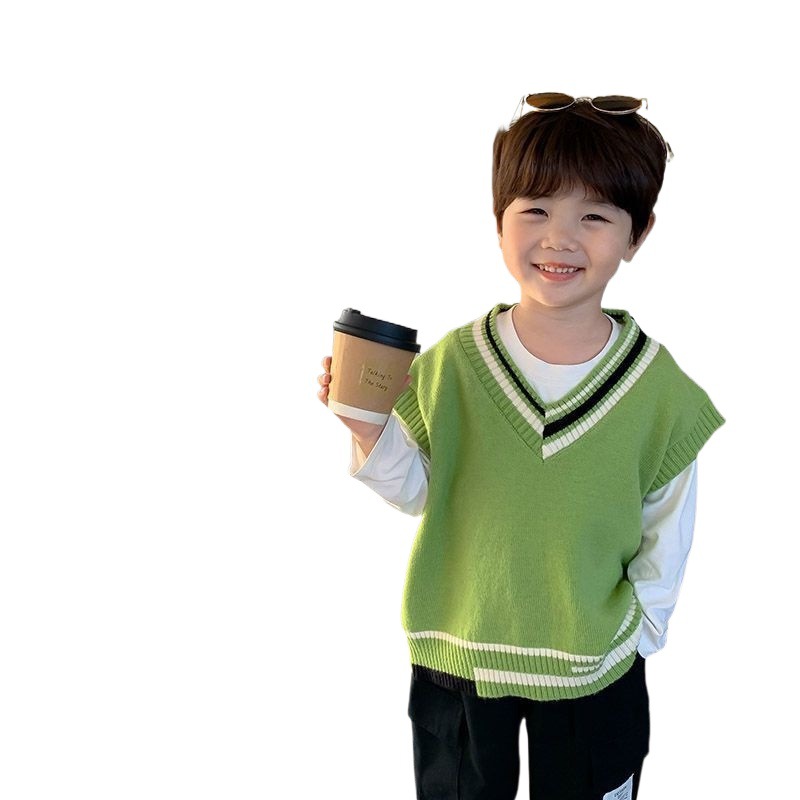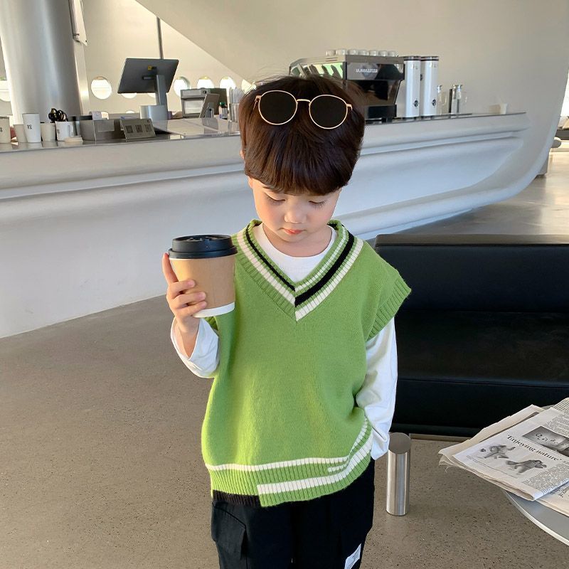 Children's Knitted Vest Boys' Jacket Autumn Thin Wareback Men's Baby Spring Dress Western-style Vest Boy Spring and Autumn