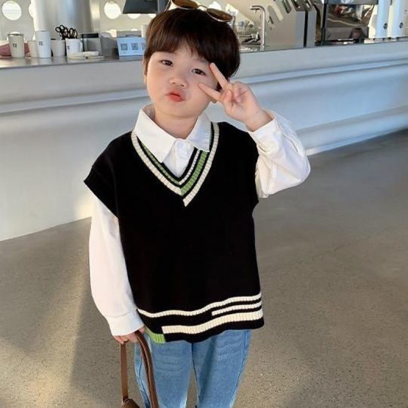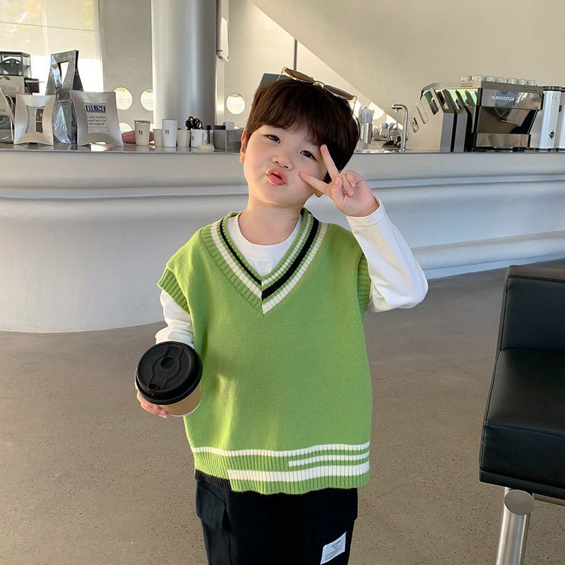 Children’s Knitted Vest Boys’ Jacket Autumn Thin Wareback Men’s Baby Spring Dress Western-style Vest Boy Spring and Autumn