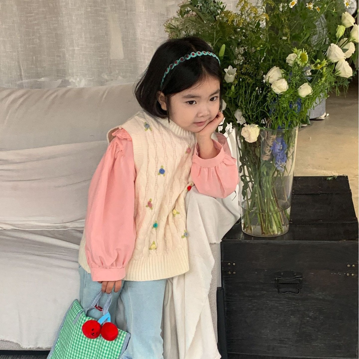 | nameOriginal | Children's knitwear Lai hug 2024 spring new popular girls' Korean style small flower pullover sleeveless sweater |