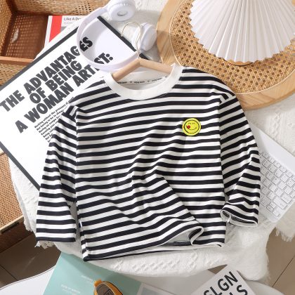 Children’s Korean-style bottoming shirt baby striped round neck pullover single top girls’ long-sleeved T-shirt boys’ autumn children’s clothing