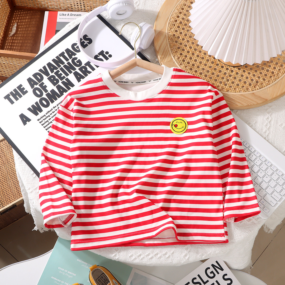 Children's Korean-style bottoming shirt baby striped round neck pullover single top girls' long-sleeved T-shirt boys' autumn children's clothing