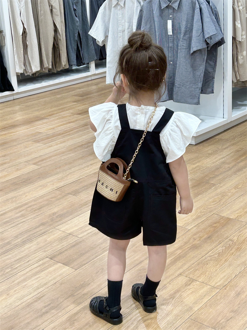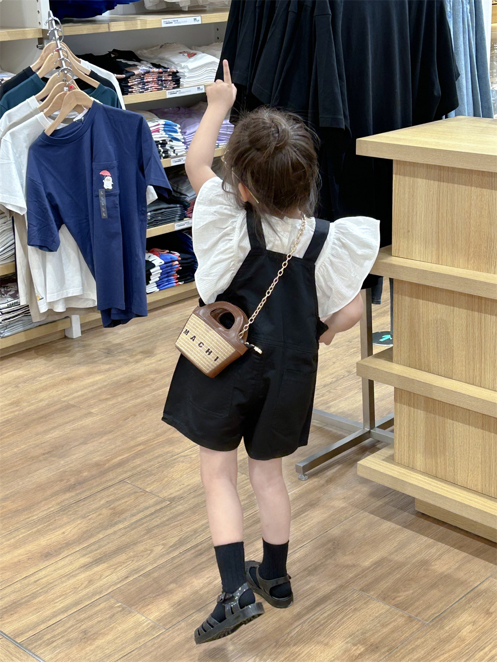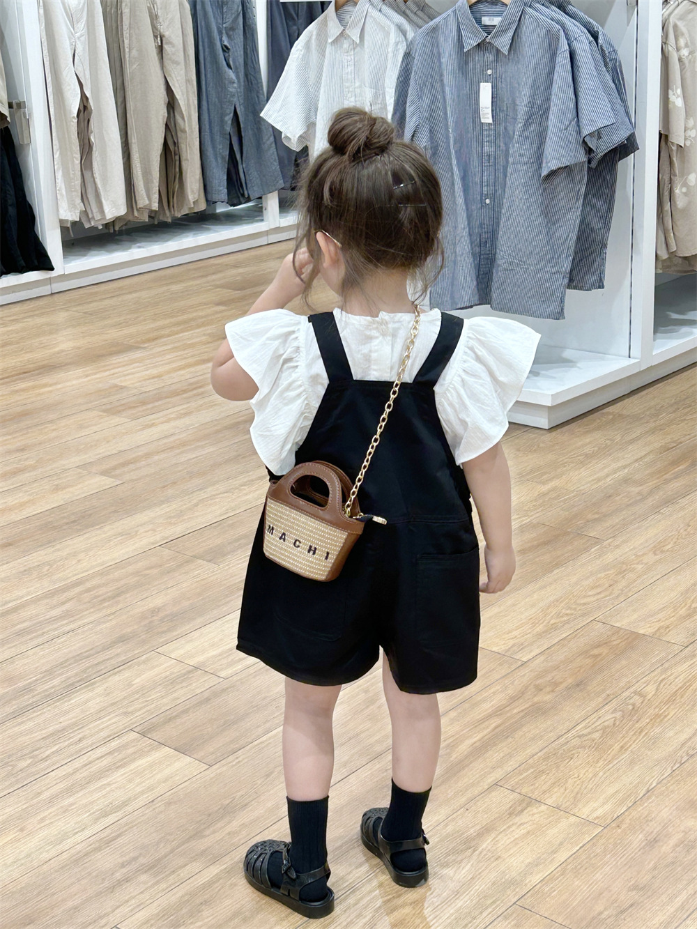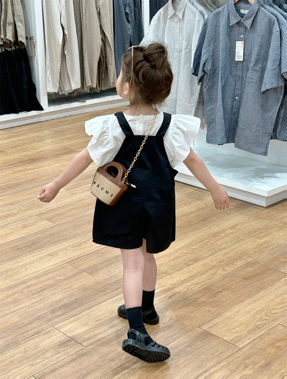 | nameOriginal | Children's Korean-style Children's Wear 2023 Summer New Children's Black Cotton Strap Shorts Lace Shirt Top |