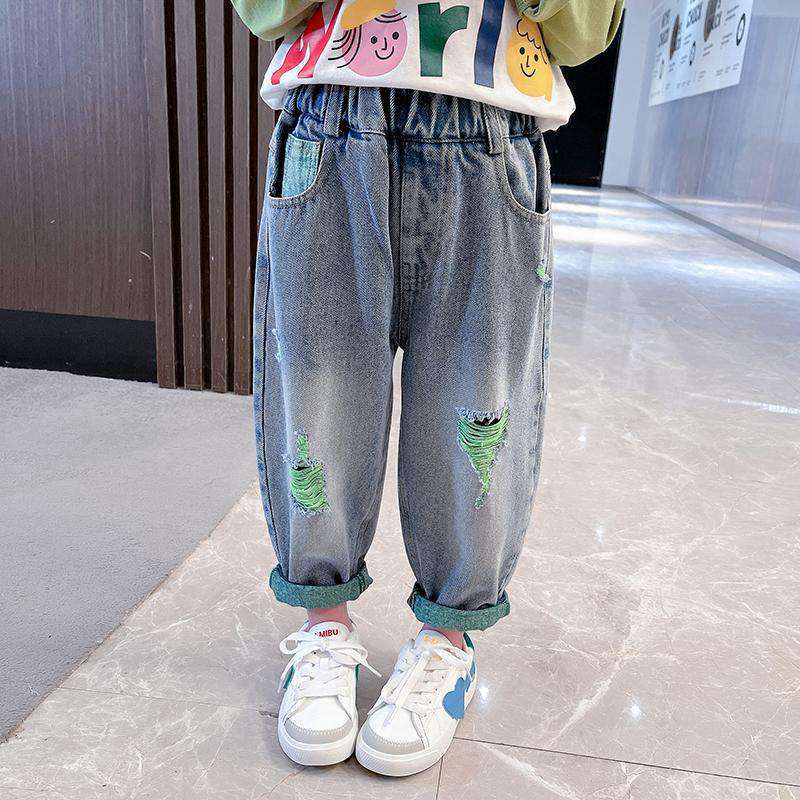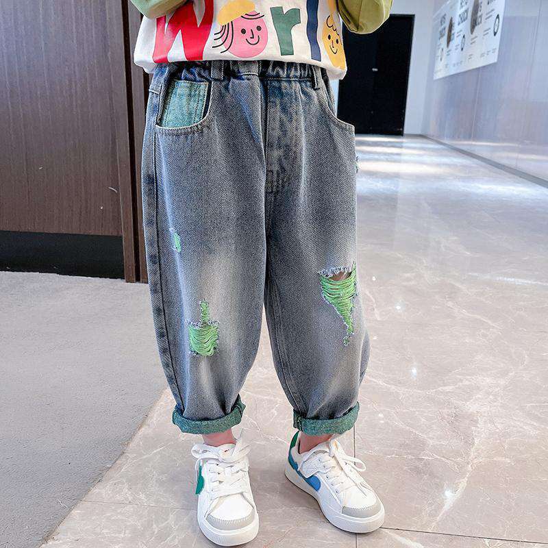 | nameOriginal | Children's Korean-style Jeans Spring 2023 New Boys and Girls Western-style Ripped Straight Trousers Small and Medium-sized Children's Pants |
