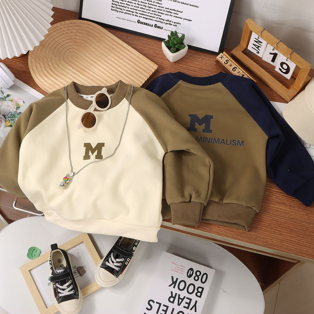 Children's Korean-style loose raglan sweater 2024 spring and autumn double-sided printed fashionable boys' round neck long sleeve middle children's sweatshirt