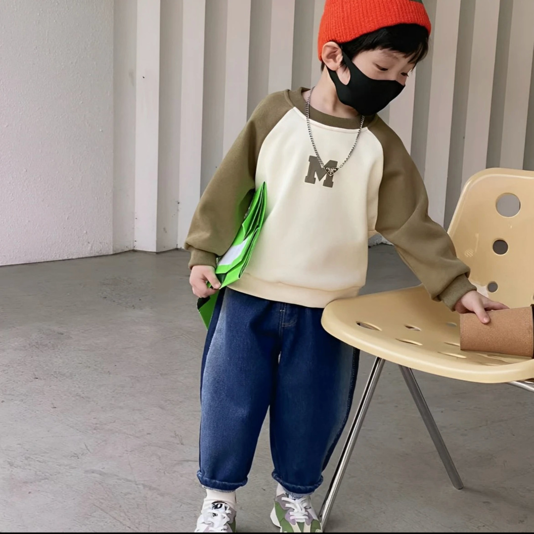 Children’s Korean-style loose raglan sweater 2024 spring and autumn double-sided printed fashionable boys’ round neck long sleeve middle children’s sweatshirt