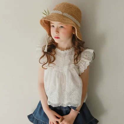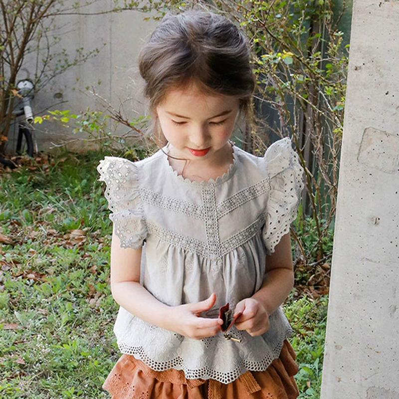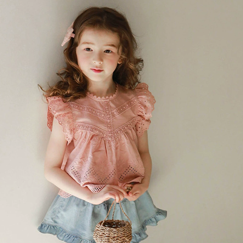 | nameOriginal | Children's lace doll shirt 2024 summer dress 3-10 years old girl baby embroidered flying sleeves sweet cotton shirt flying sleeves |