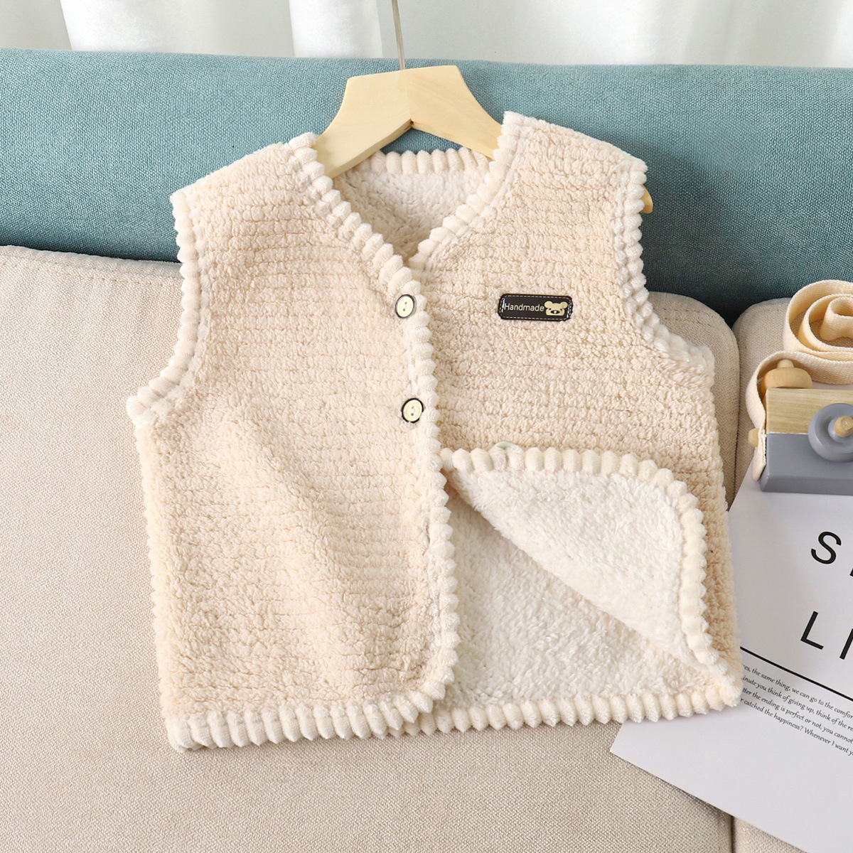 | nameOriginal | Children's Lamb Fleece Vest Autumn and Winter Double-Sided Fleece-Lined Cardigan Children's Casual Solid Color Single-breasted All-match Vest Trendy |