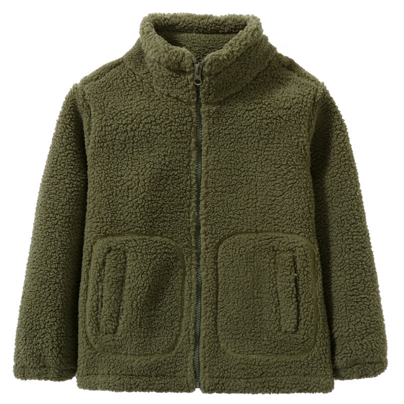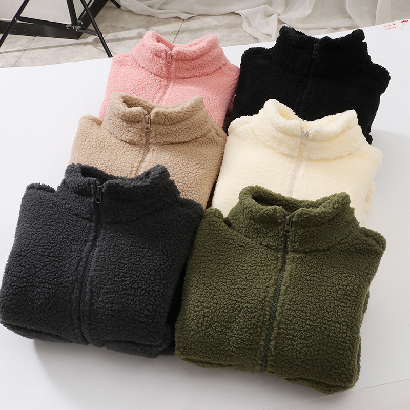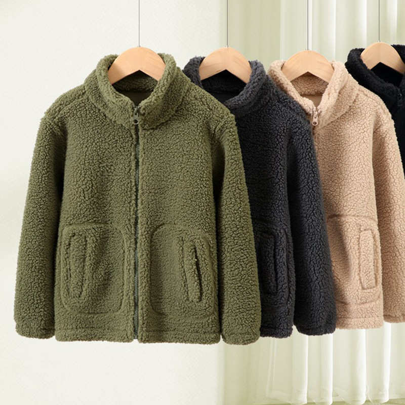 Children’s lambswool autumn and winter coat fleece-lined thickened medium and large children’s granular fleece warm parent-child stand collar coat New