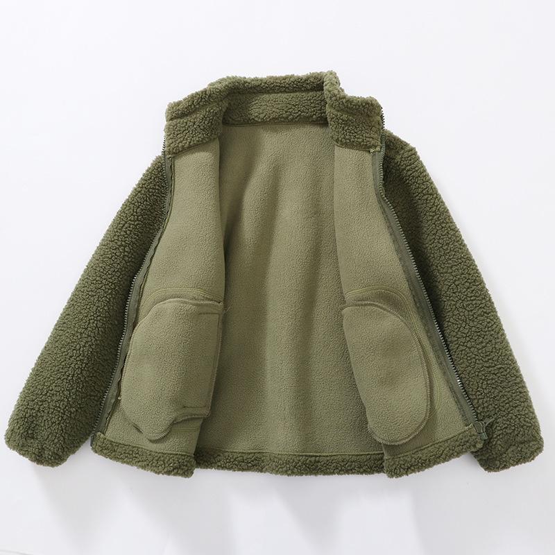 Children's lambswool autumn and winter coat fleece-lined thickened medium and large children's granular fleece warm parent-child stand collar coat New