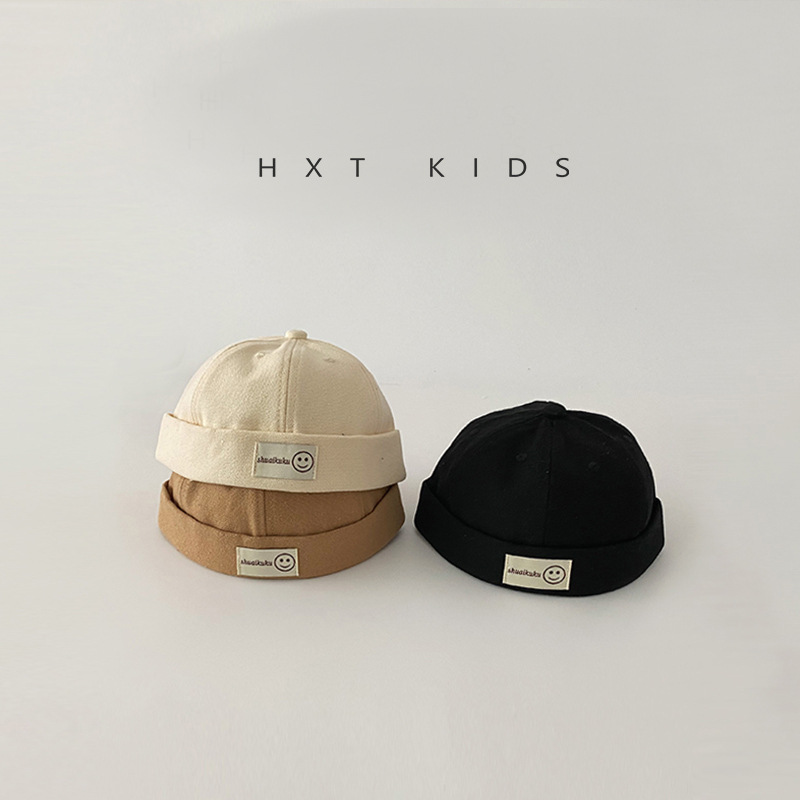 Children’s landlord hat spring and autumn smiley face logo Korean baby fashion simple wear melon skin hat spring travel hat tide