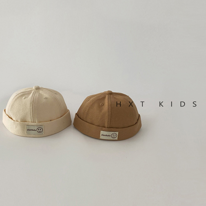 Children's landlord hat spring and autumn smiley face logo Korean baby fashion simple wear melon skin hat spring travel hat tide