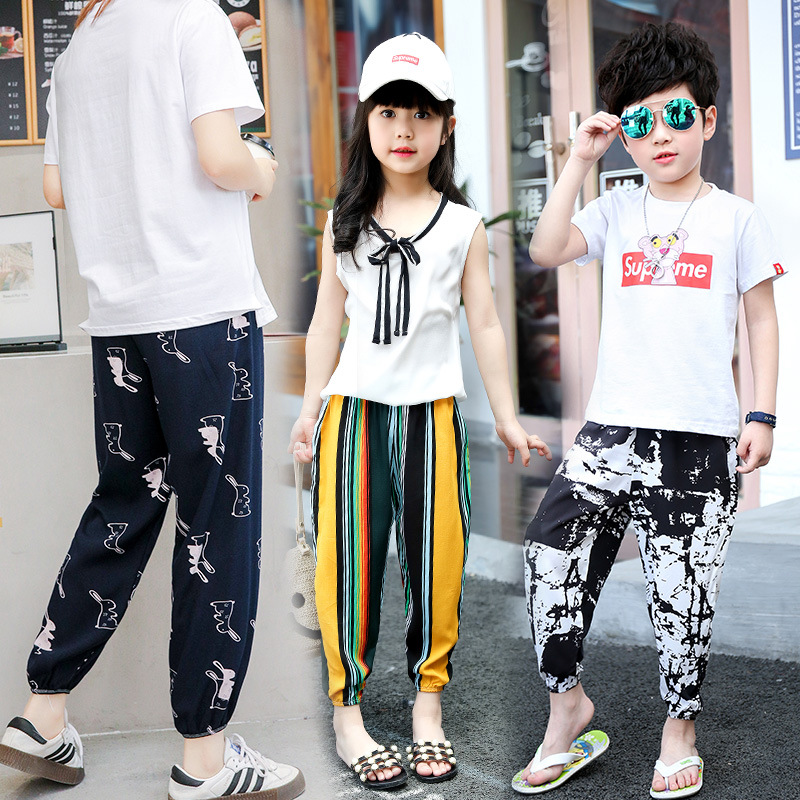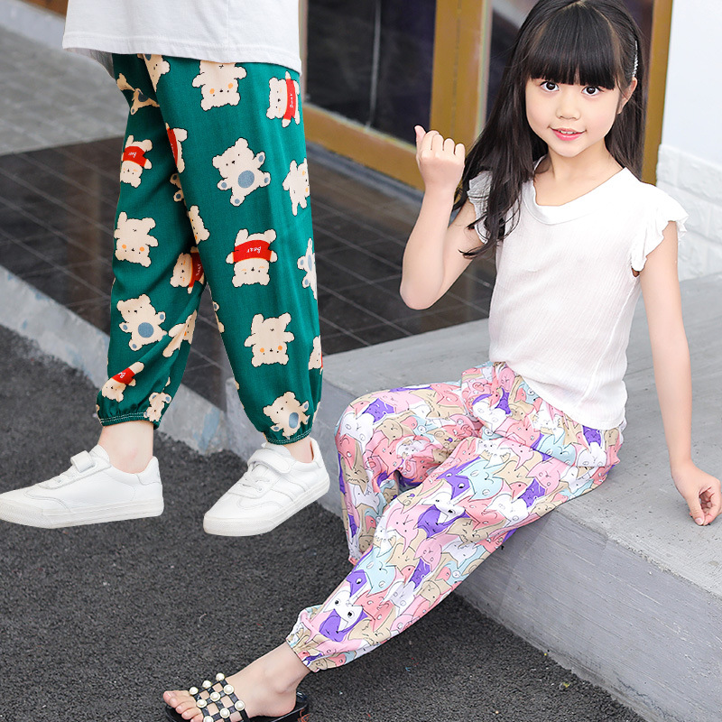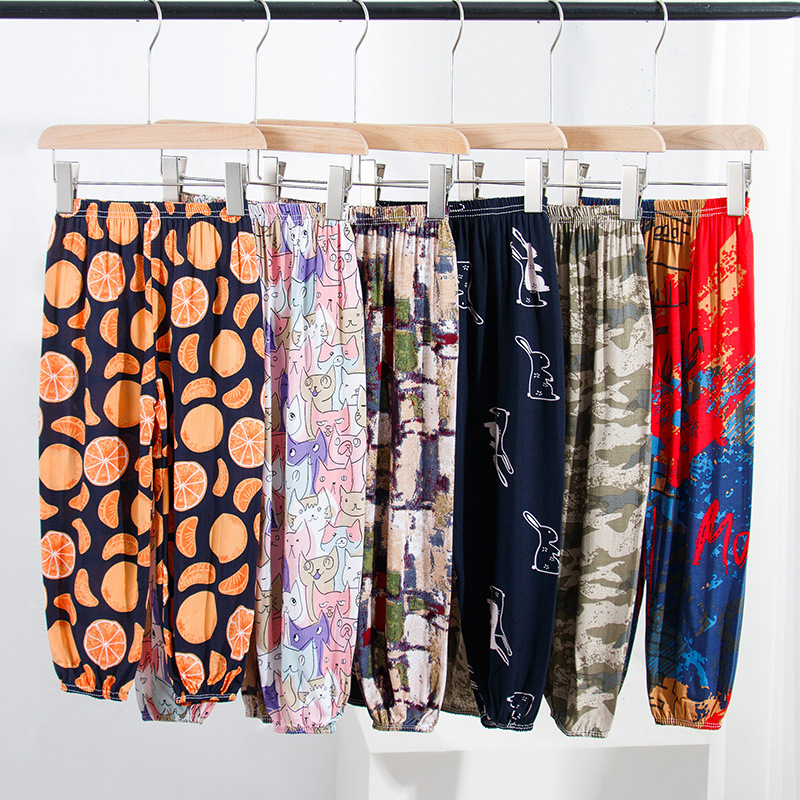 Children's Lantern Pants Thin Floral Cotton Silk Pants for Boys and Girls Pajama Pants Baby's Anti-mosquito Pants Adult Pants Summer Family Pants