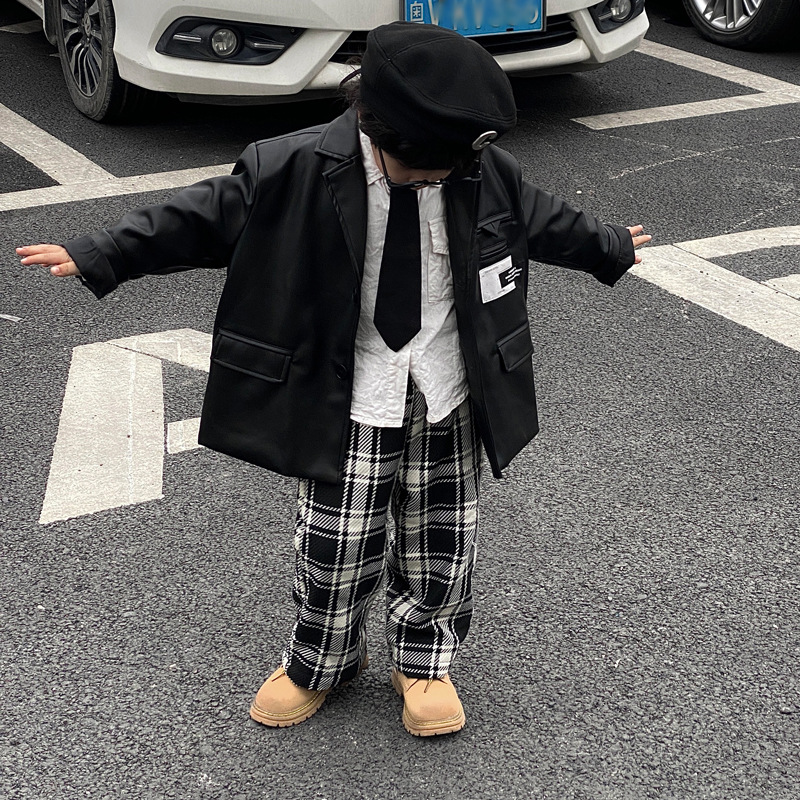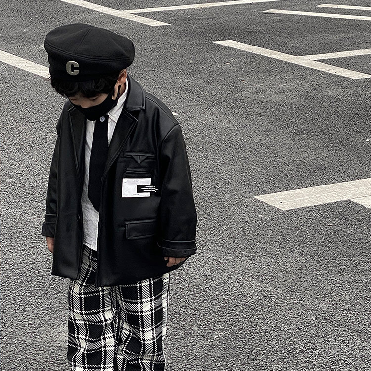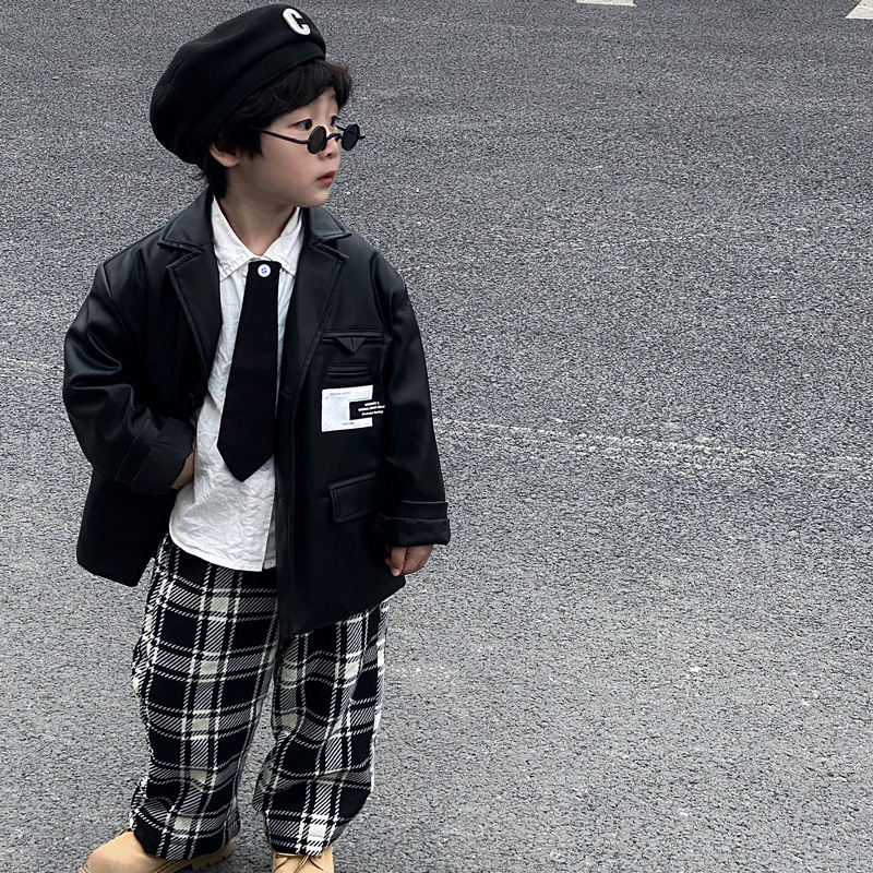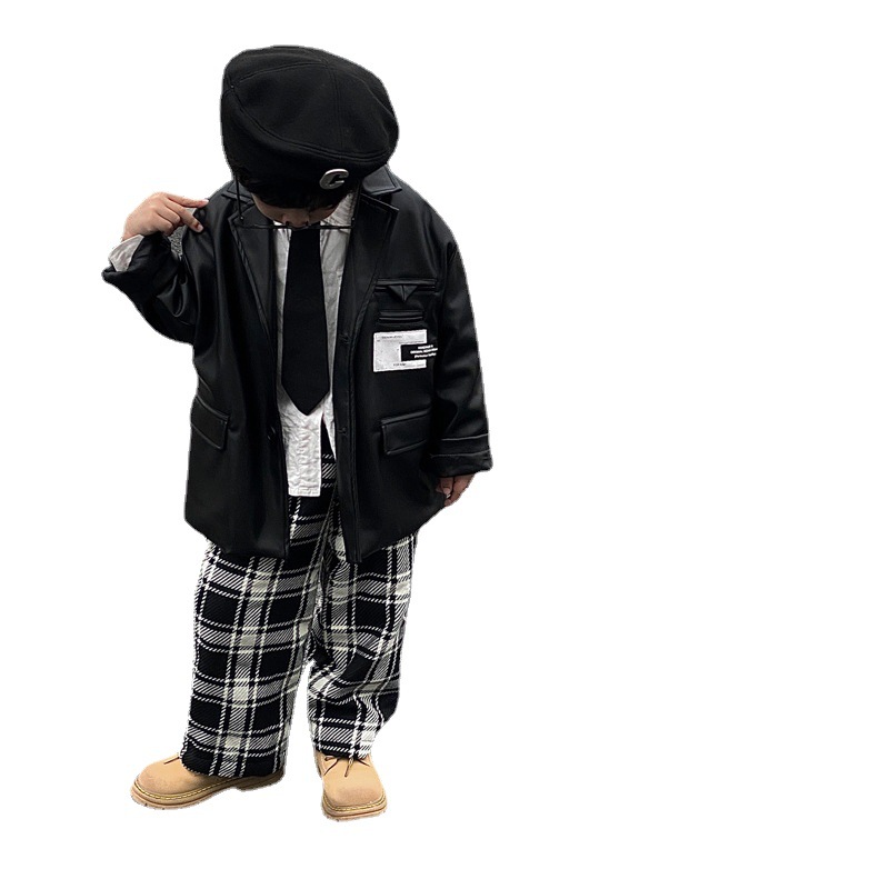 nameOriginal | Children's leather suit 2023 autumn and winter New boys' soft Pu top Korean style handsome trendy small suit one-piece delivery |