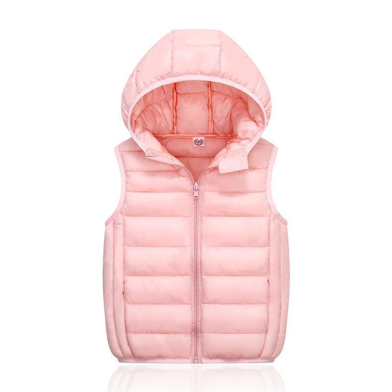 Children's Light Down Cotton Vest Men's and Women's Autumn and Winter Outer Wear Hooded Vest for Middle and Big Children's Kindergarten Horse Clip Waistcoat