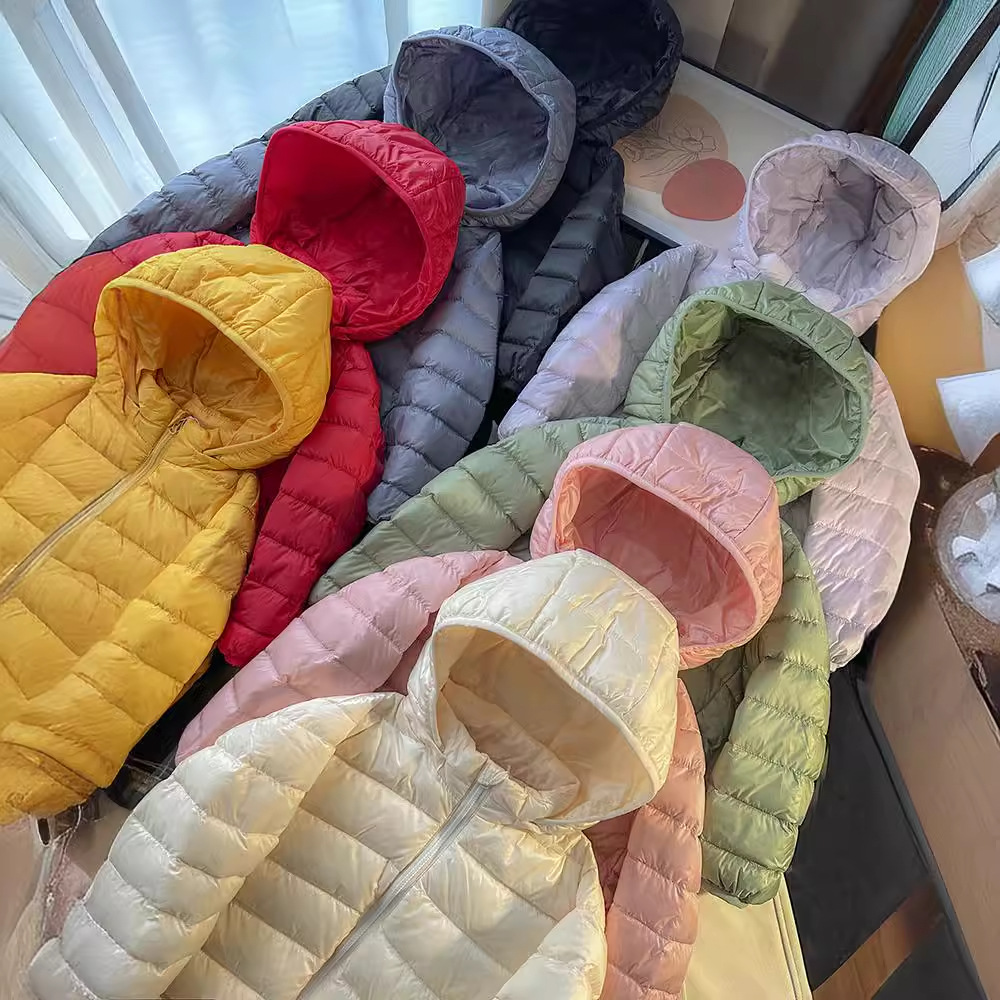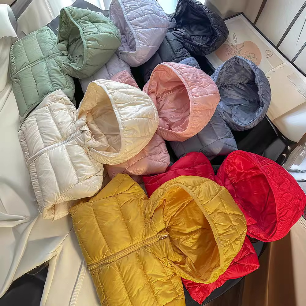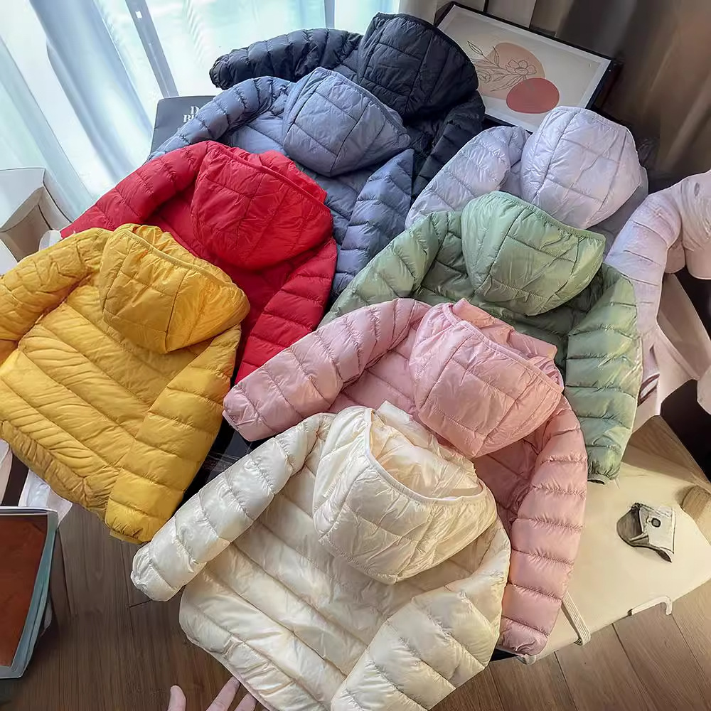 | nameOriginal | Children's light down jacket short boys and girls baby children can take off the cap 90% white duck down candy color |