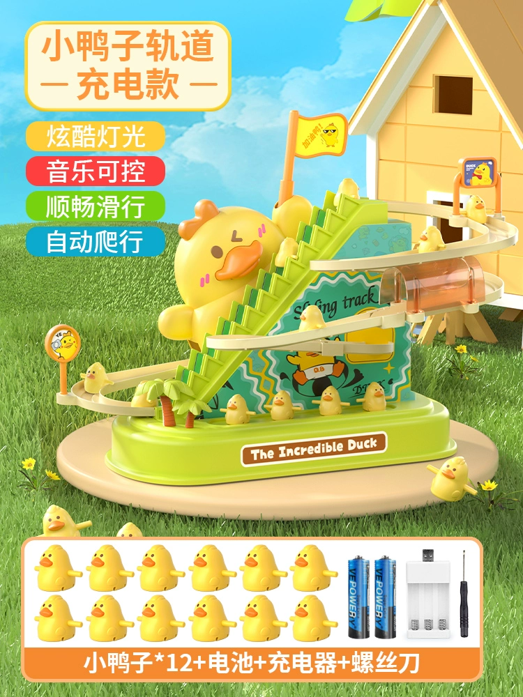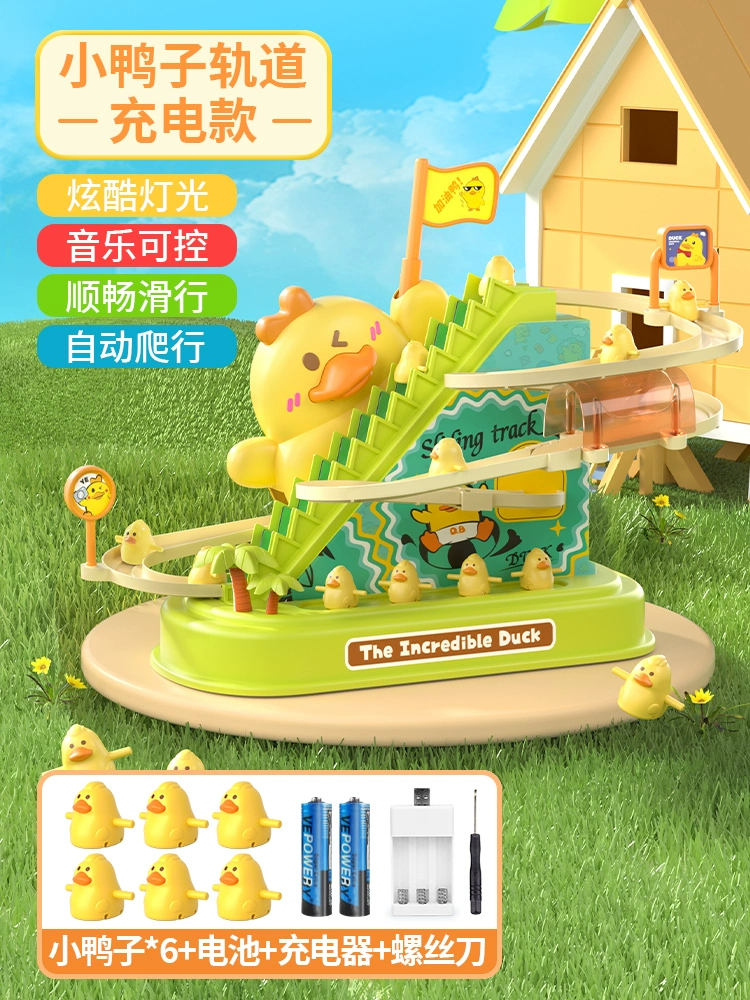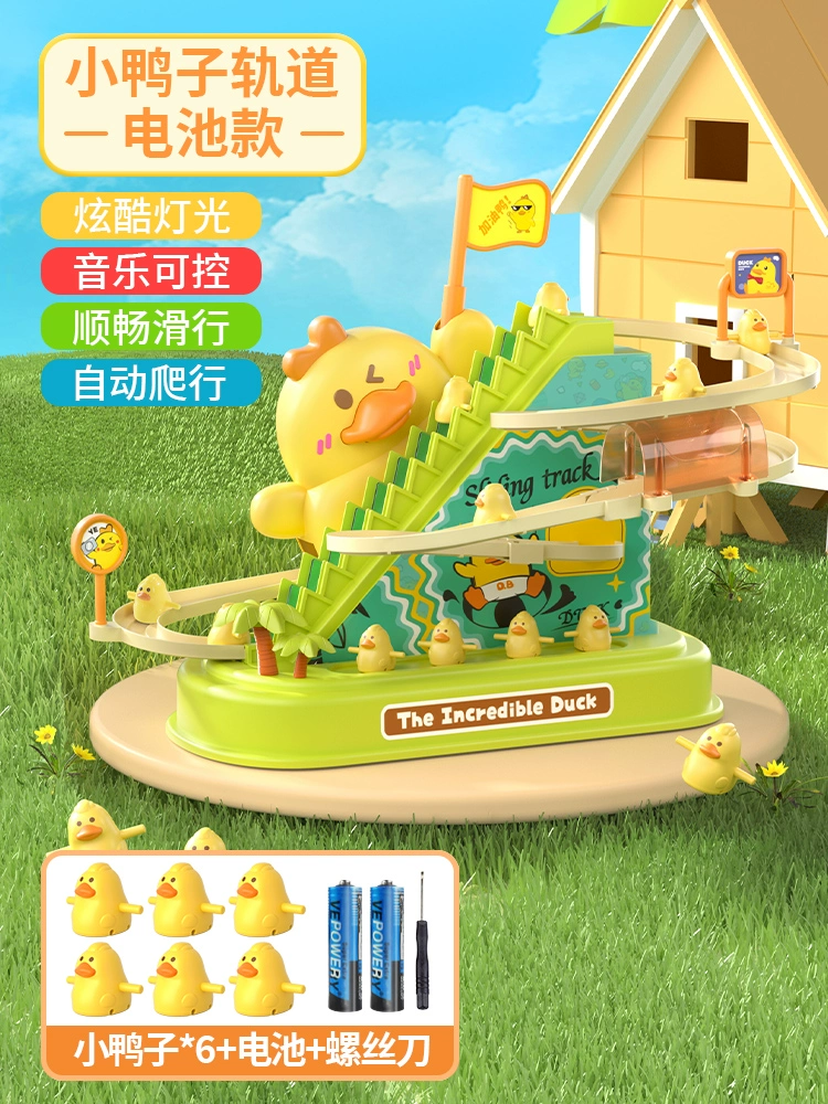 | nameOriginal | Children's little yellow duck climbs up the stairs toy internet celebrity baby puzzle 1-3 years old electric slide slide track for boys |