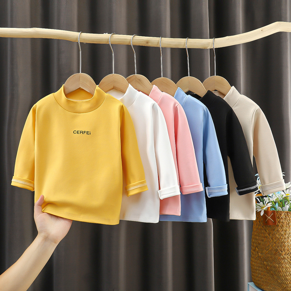 | nameOriginal | Children's long-sleeved bottoming shirt autumn and winter de Velvet stretch top boys and girls half turtleneck T-shirt medium and big children's thermal underwear |