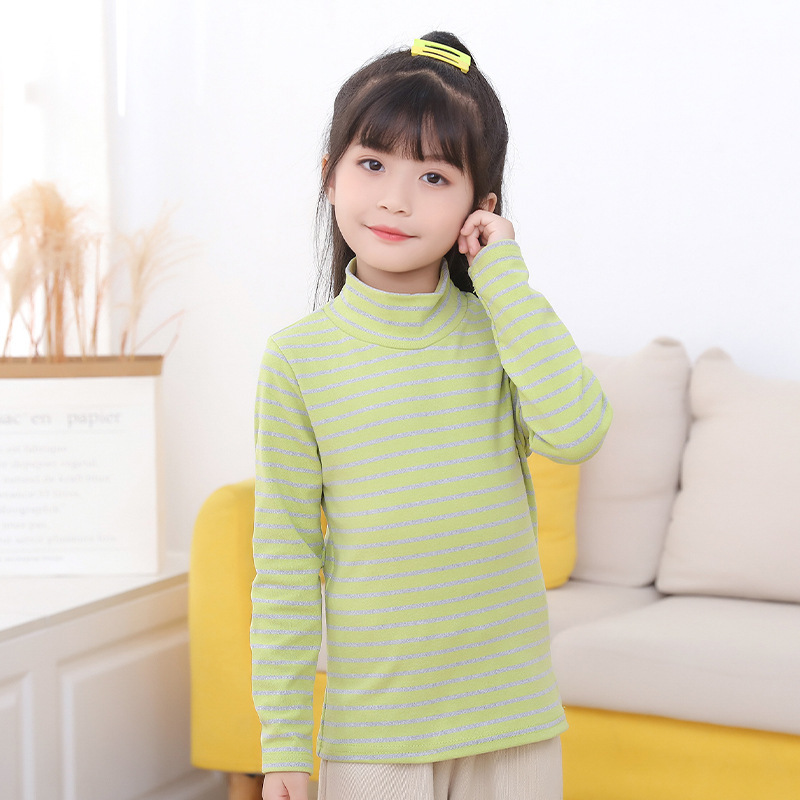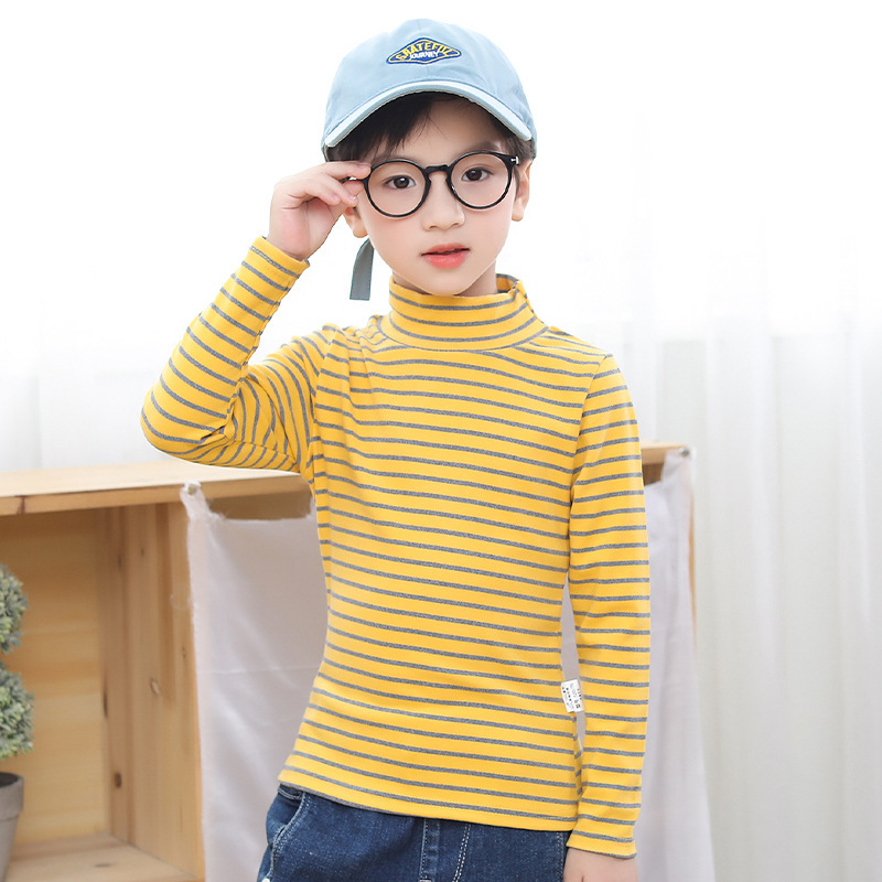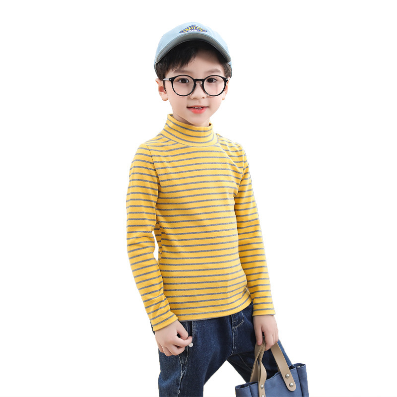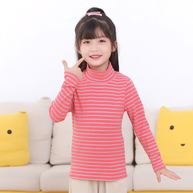 | nameOriginal | Children's long-sleeved bottoming shirt stretch autumn clothes new boys and girls striped T-shirt de velvet mid-high collar single top children's clothing |