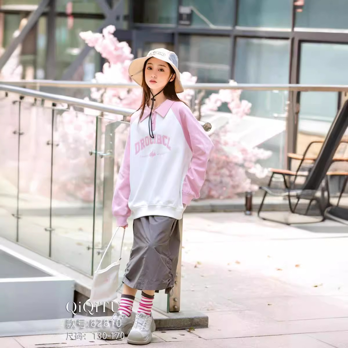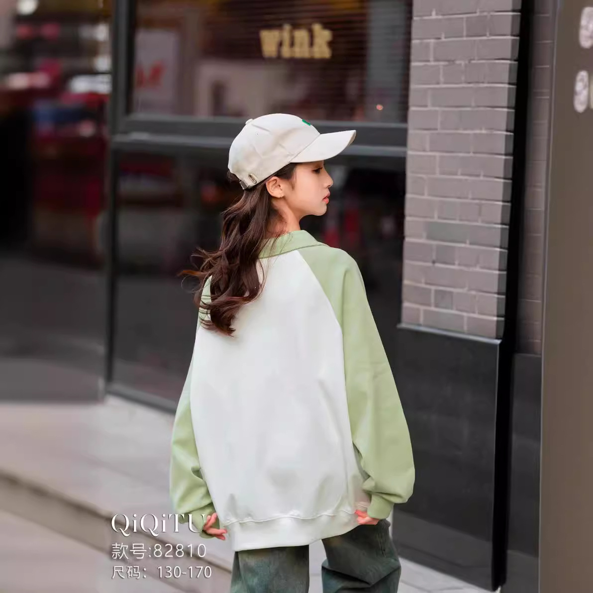 Children’s long-sleeved polo shirt 2024 children’s spring casual loose girls’ color matching lapel sweater top wholesale
