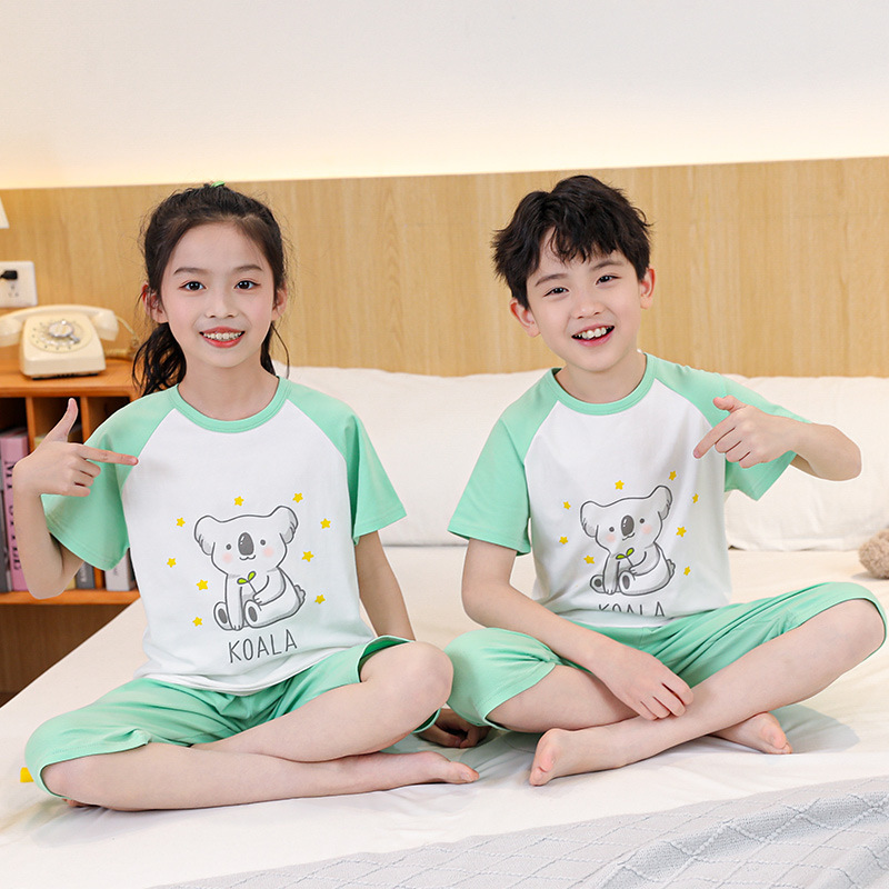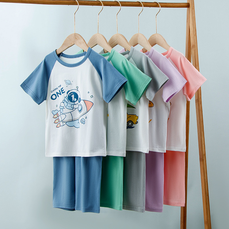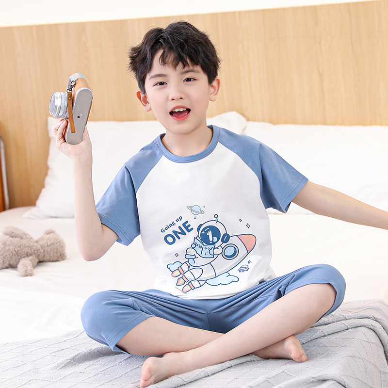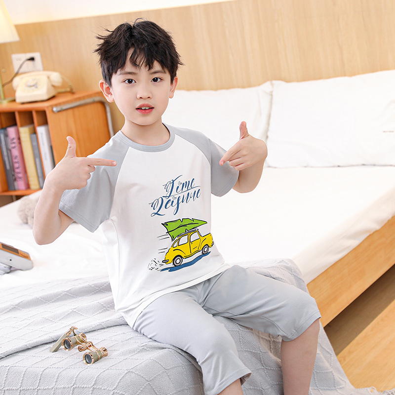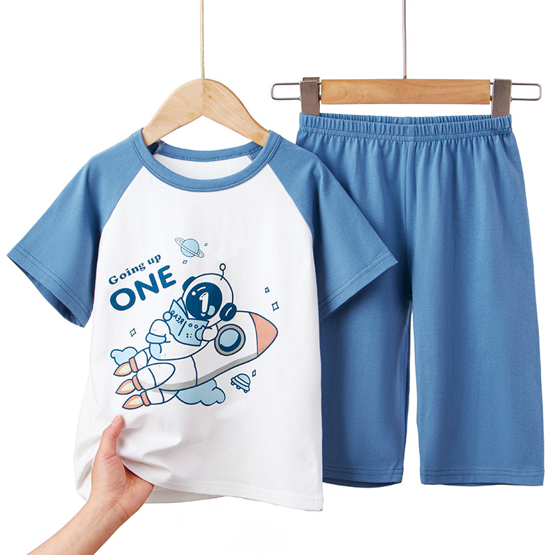 Children's Lycra Short-sleeved Capri Pants Home Clothes suit Boys' Spring and Summer Thin Girls' Cartoon Air-conditioning Clothes suit