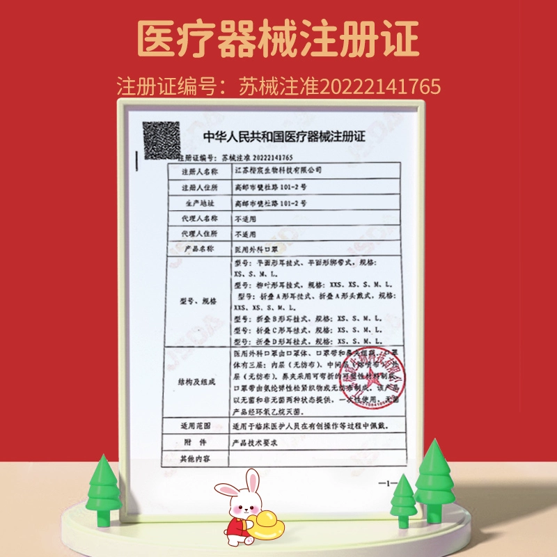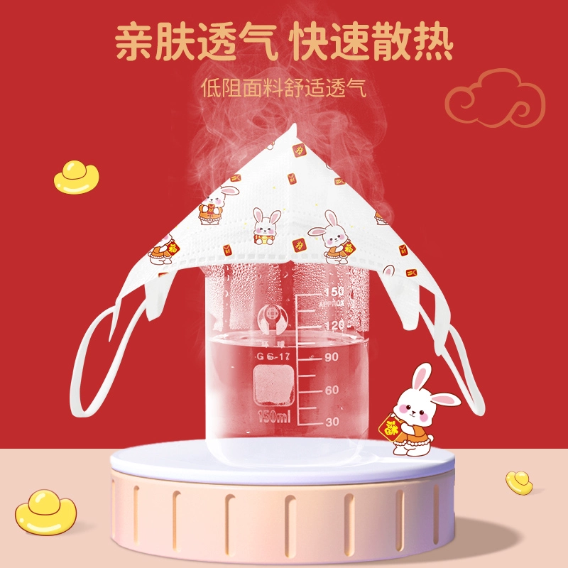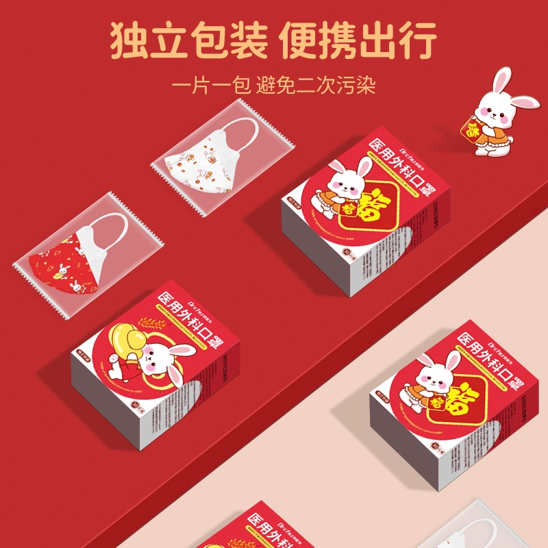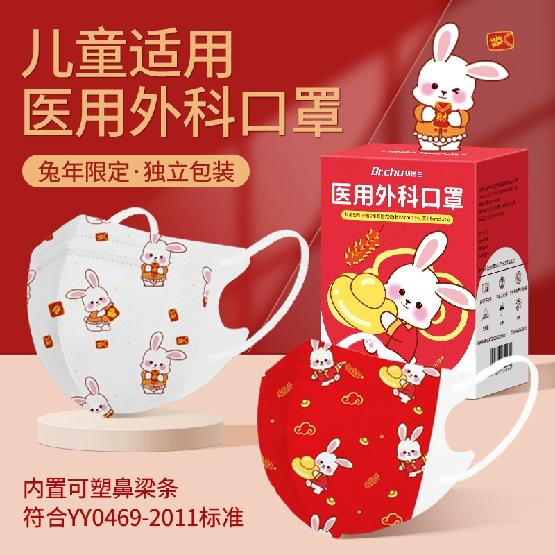 Children's medical surgical mask 3D three-dimensional official flagship store genuine children's special 2023 new Year of the Rabbit red