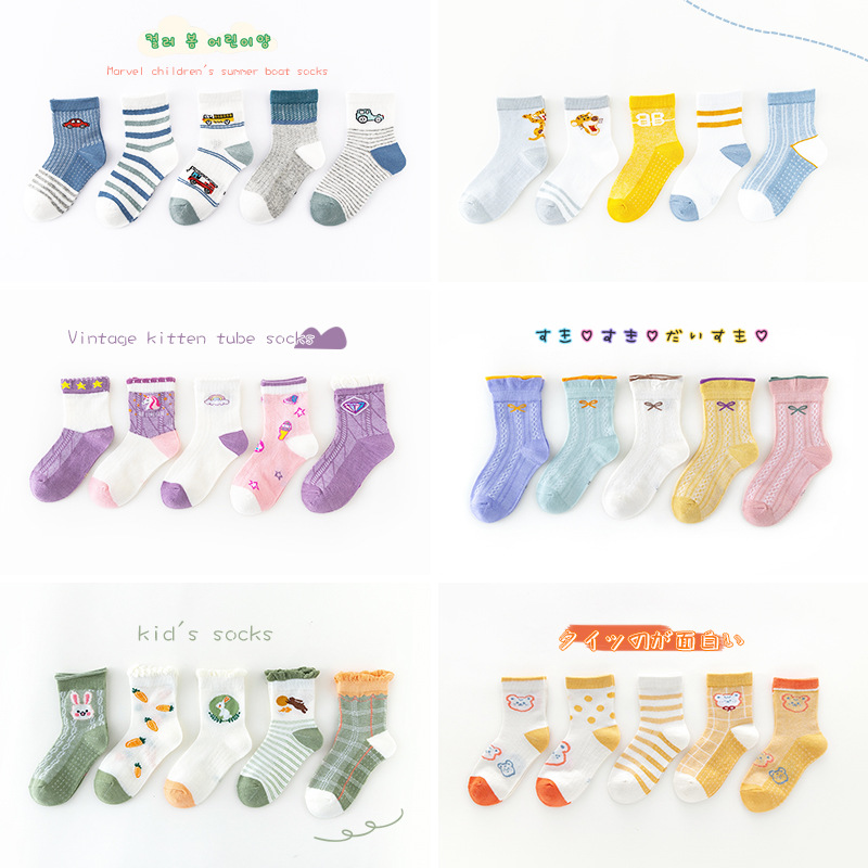 Children’s mesh thin mid-calf socks spring and summer cartoon breathable boneless cotton socks boys and girls sports socks middle and older children
