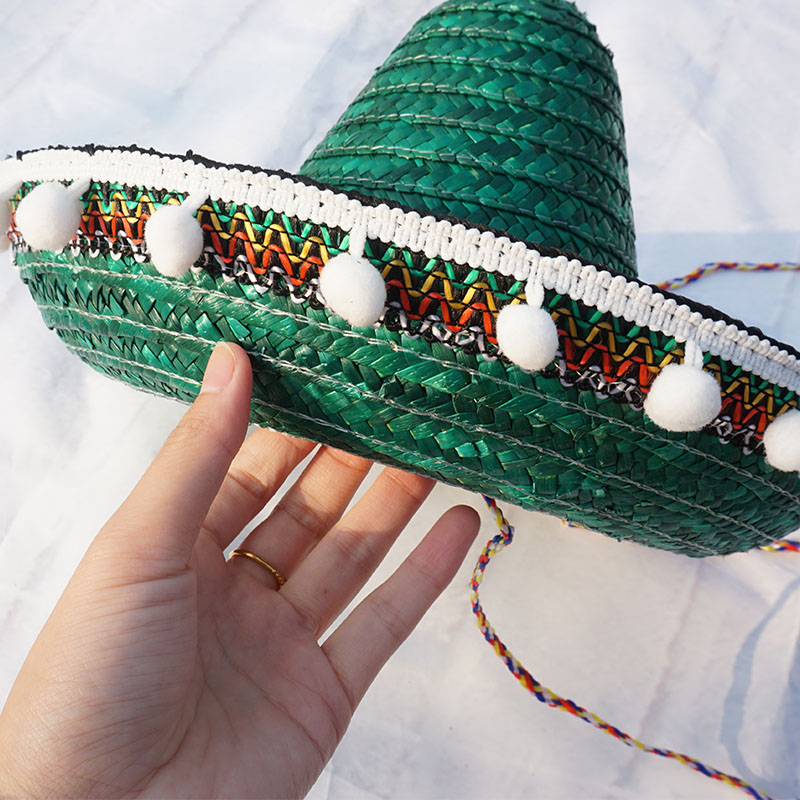 | nameOriginal | Children's Mexican Straw Hat Halloween Carnival Party Performance Prom Costume Props Parent-child Pompom Color Straw Hat |